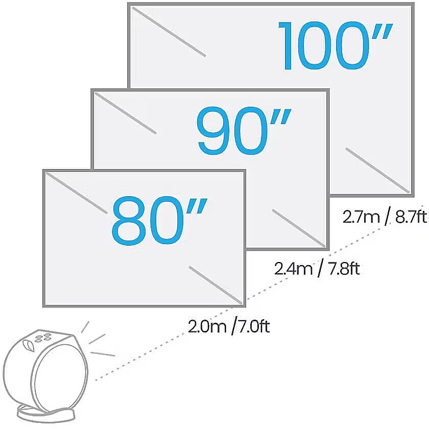 Uzyskaj 80-calowy ekran z zaledwie siedmiu stóp. GV31 zamienia każdą ścianę lub sufit w wciągające wrażenia kinowe. Twój przytulny zakątek jest teraz kinem na dużym ekranie.