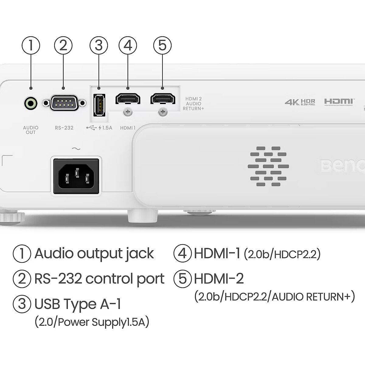 BenQ lets you play on your terms. Whether youre using PS5/PS4, Switch or Xbox Series X, dual universal HDMI 2.0b ports have you covered. (Compatible with HDMI 2.0b 4K @ 60Hz / 1080p @ 120Hz) Plus, eARC lets you send 7.1-channel and Dolby Atmos audio in unaltered resolution to your sound system via a single HDMI cable.