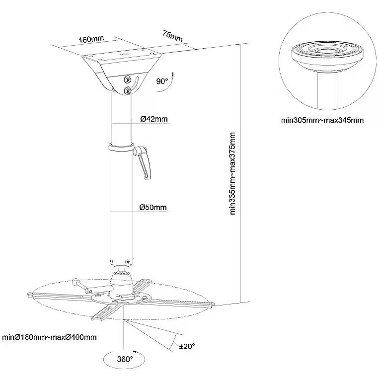 Description - MB PROJECTOR MOUNT HD 305-345MM