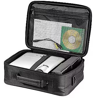 LongDesc - Highlights:- Projector bag with all round padding and flexible interior layout;- Two large additional pads (can be positioned as desired) with hook and loop fastener;- Adjustable, removable hook and loop inner divider;- Strap for securing the projector;- Removable pocket for cables;- Large zipped mesh pocket for accessories, with hidden zip, to protect the surface of the projector;- Front pocket outside;- Document compartment on the back;- Padded handle;- Removable shoulder strap.