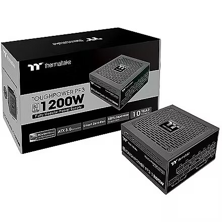 Description - Toughpower PF3 1200W Platinum - TT premium edition The Toughpower PF3 series is 80 PLUS Platinum certified and fully compatible with the Intel ATX 3.0 specification. Designed with a native PCIe Gen 5 connector, it can power next-generation technology over a single new 12VHPWR cable. Power next-generation equipment To fully support next-generation hardware, the Toughpower PF3 Platinum Series (750W/850W/1050W/1200W) is designed to meet ATX 3.0 standards, including a PCIe Gen 5.0 12VHPWR connector. The PF3 Platinum series provides performance at the 80 PLUS Platinum level and also offers the highest stability, durability and reliability. Compatible with Intel ATX 3.0 standards The Toughpower PF3 Platinum Series is fully compatible with the Intel ATX 3.0 specification, which supports power surges of up to 200%, achieves 70% efficiency at low load, and complies with required power response time standards. PCIe Gen 5.0 ready The Toughpower PF3 series is equipped with a 16-pin connector that ensures high and stable performance, allowing the power supply to natively support next-generation graphics cards. The power specified on the 12VHPWR connector is the recommended power. (See Intel design guidelines) The native 16-pin (12VHPWR) PCIe connector on the PF3 1200W can deliver up to 600W for PCIe 5.0 graphics cards. Created to be compatible with the latest graphics cards As the energy demand of graphics cards increases, their need for power supplies also increases. The PF3 Platinum series is designed to support NVIDIA and AMD graphics cards and is ready to power graphics cards according to their different connection methods. 80 PLUS Platinum certificate 80 Plus Platinum certification means Toughpower PF3 converts energy efficiently, resulting in lower power loss and heat build-up inside the power supply. Smart and quiet Equipped with a 120mm fluid bearing fan that strikes the perfect balance between silence and excellent cooling. In addition, the Smart Zero Fan function will adjust the fan speed and minimize unwanted noise.