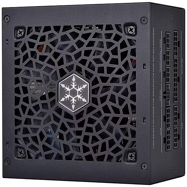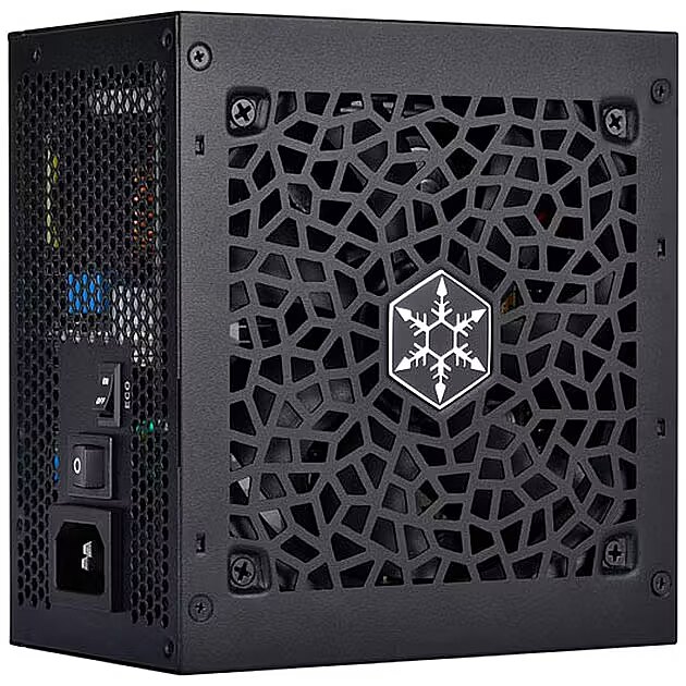 Этот блок питания марки Silverstone имеет сертификат энергоэффективности 80 PLUS Gold и выходную мощность 850W.