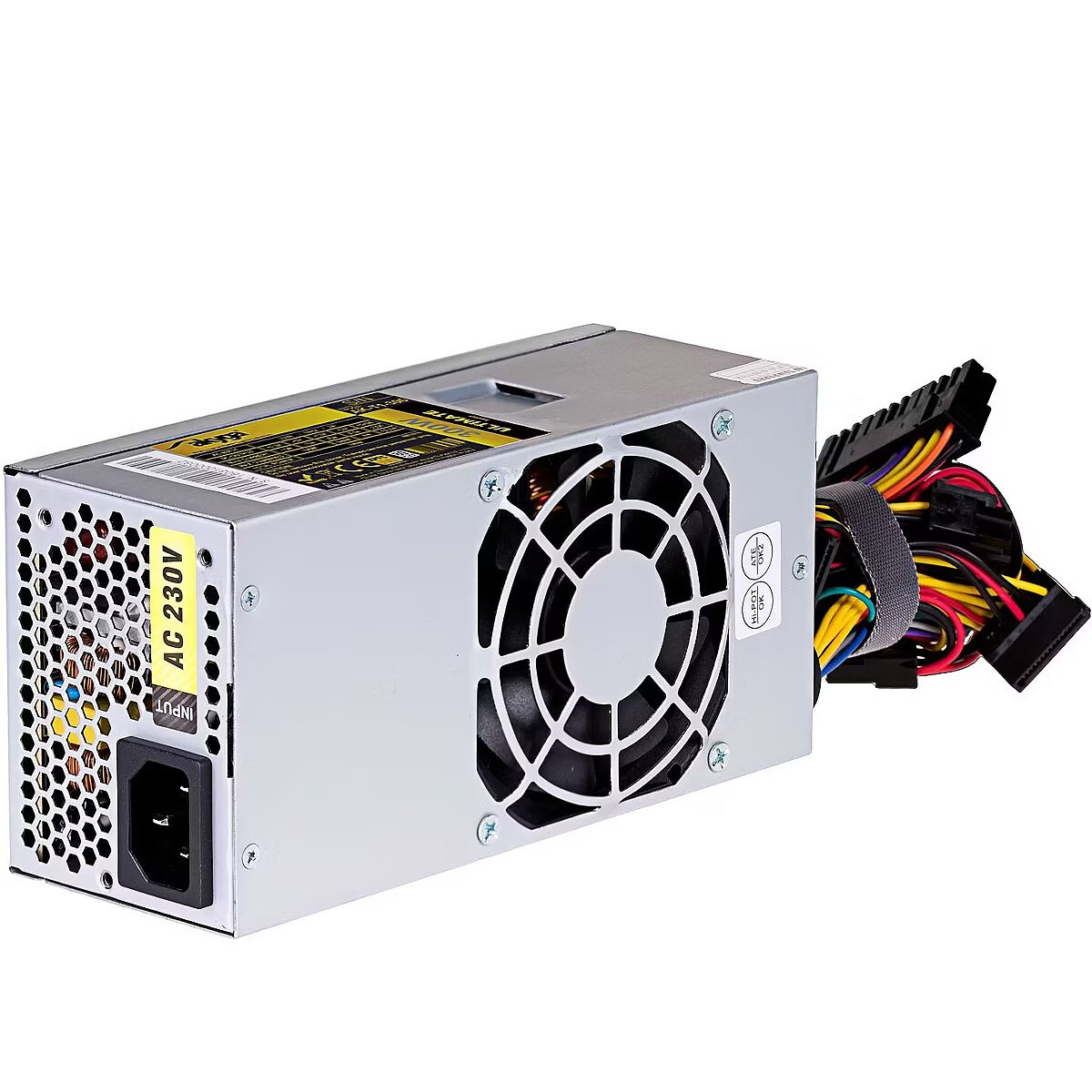 Description - The Akyga TFX power supply 300W is an advanced, compact power adapter dedicated to mini and media PC systems. It supports all the latest construction standards, ensuring high performance and stability. The power supply features a 4-pin connector, MOLEX connector, 3 x SATA connector and universal 24-pin motherboard connector. A guarantee of high efficiency is the 80 PLUS compatibility which ensures that at least 80% of energy provided by the power supply is received by computers components and a maximum of 20% of energy is lost in the form of heat. High efficiency allows effective supplying and so the stable operation of the power supply affects the reliability of all components of the computer. Effective cooling is provided by efficient, silent fan of 8 cm diameter. The power supply is ideal for small and medium-sized cases thanks to optimized 36 cm long set of cables. Product is made of durable galvanized steel. An important aspect is the presence of several important protectors (OVP, OCP, OPP, OTP, SCP, UVP) and active PFC filter that protects and prevents motherboard, processor and other parts from damage and stabilize the operation of the power supply so that it works without any unwanted interference. The TFX AK-T1-300 power supply is a high quality product that meets the current requirements and corresponds to modern standards.