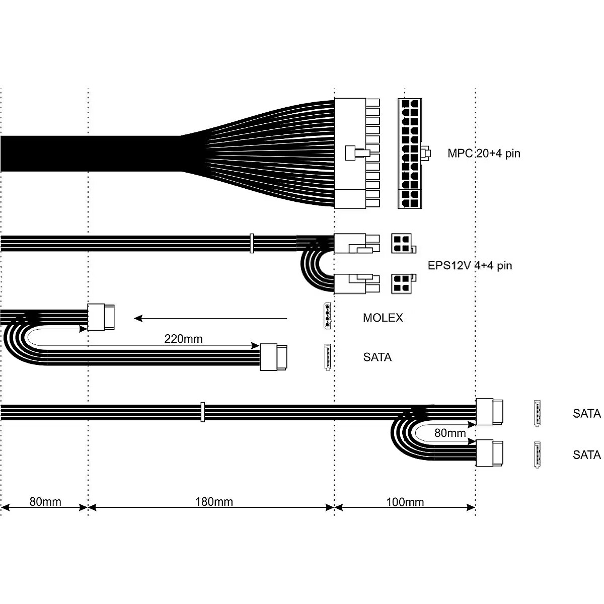 Блок питания не имеет модульных кабелей; все кабели присоединены к блоку питания и не съемные. Несмотря на это, он будет работать так же хорошо, как блок питания с модульными кабелями.