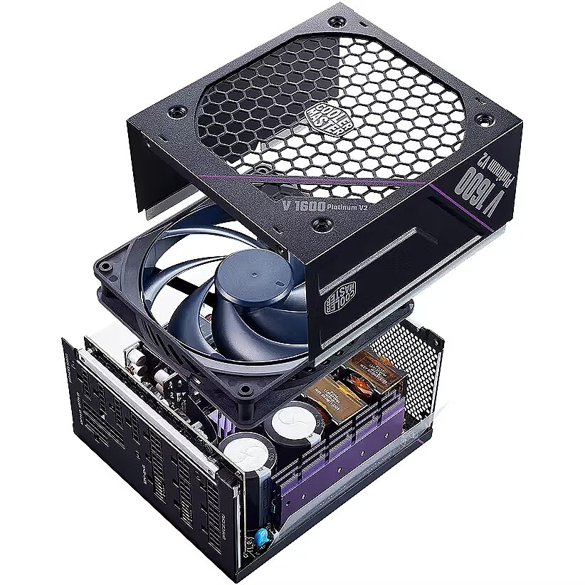 Для покупки доступен источник питания, произведенный Cooler Master с выходной мощностью 1600W. Продукту был присвоен сертификат энергоэффективности 80 PLUS Platinum.
