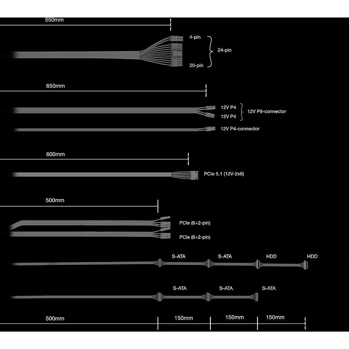 SATA power cable length Ports & interfaces - 500/650/800 mm