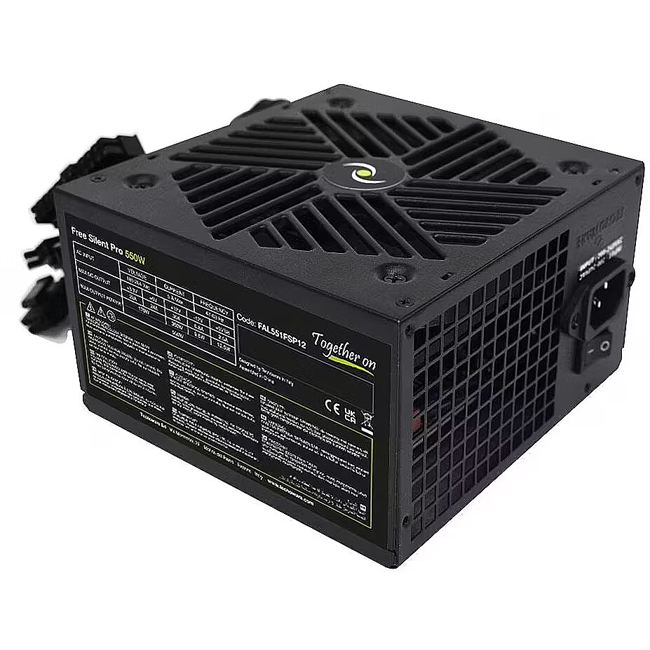 Summary - Tecnoware Free Silent PRO 550. Total power: 550 W, AC input voltage: 180 - 264 V, AC input frequency: 47 - 63 Hz. Motherboard power connector: 20+4 pin ATX, Motherboard power cable length: 50 cm, PCI Express power cable length: 50 cm. Purpose: PC, Power supply unit (PSU) form factor: ATX. Product colour: Black, Fan diameter: 12 cm, Number of fans: 1 fan(s). Compliance certificates: CE, RoHS