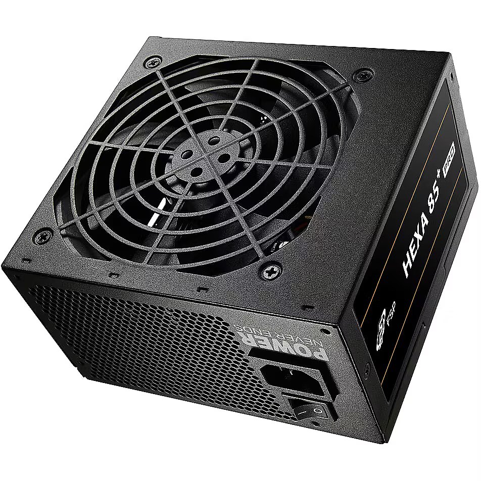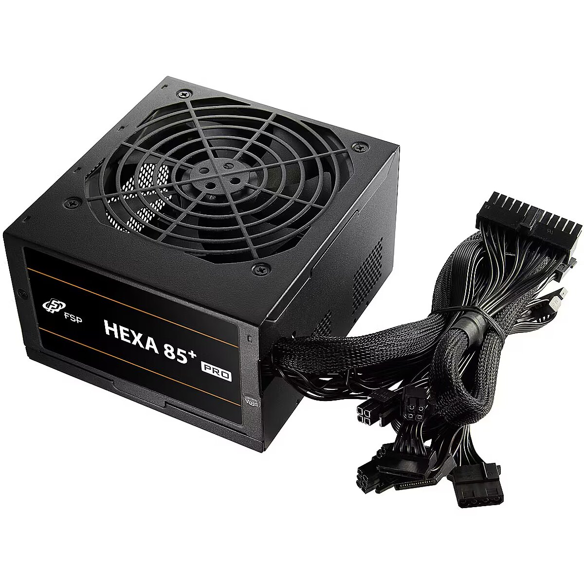 LongSummaryDescription - FSP HEXA 85+ PRO. Total power: 550 W, AC input voltage: 100 - 240 V, AC input frequency: 50 - 60 Hz. Motherboard power connector: 24-pin ATX, Cabling type: Non-Modular. Purpose: PC/Server, Power supply unit (PSU) form factor: ATX, 80 PLUS certification: 80 PLUS Bronze. Product colour: Black, Cooling type: Active, Fan diameter: 12 cm. Cables included: CPU, PCIe, Peripheral (Molex), SATA