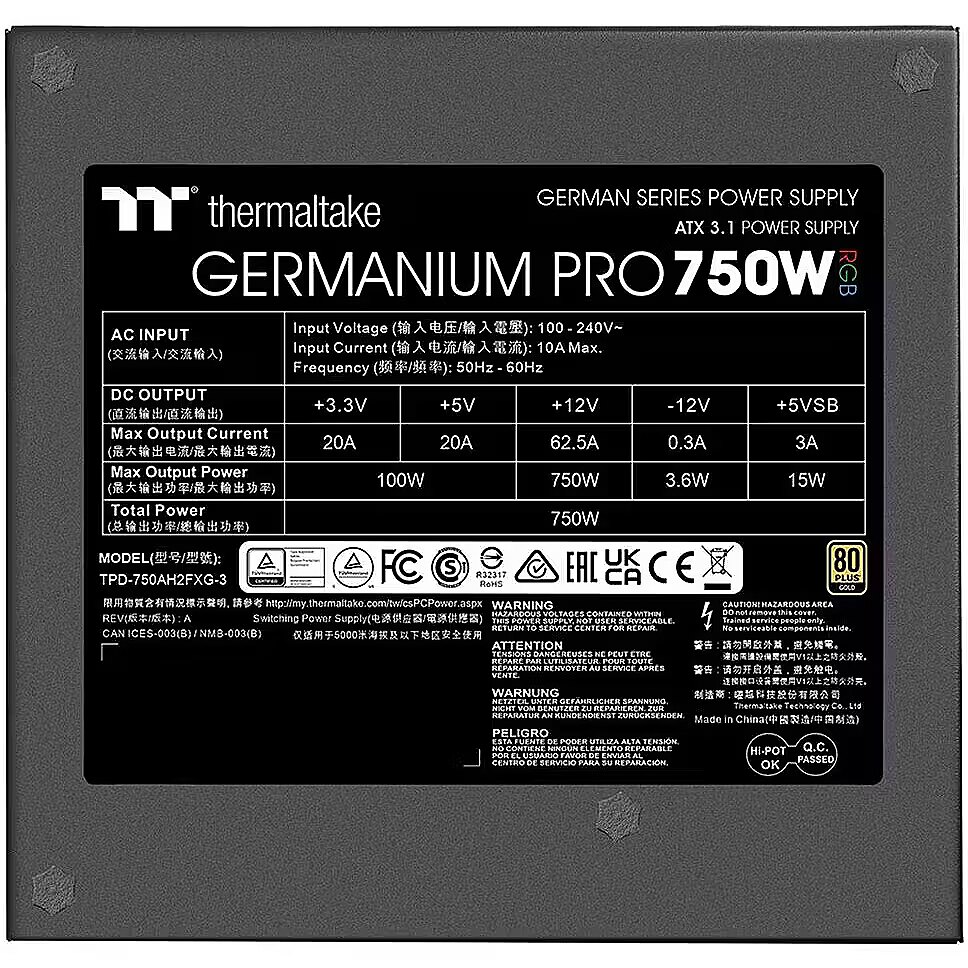 Thermaltake Germanium Pro RGB, 750W, 80PLUS Gold, ATX 3.1, PCIe 5.1