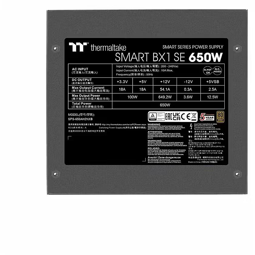 Для покупки доступен источник питания, произведенный Thermaltake с выходной мощностью 650W. Продукту был присвоен сертификат энергоэффективности 80 PLUS Bronze.