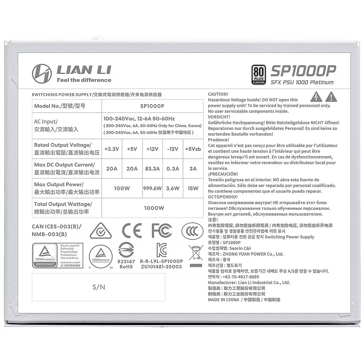 name - Lian Li SP Series Platinum 80 PLUS Platinum Netzteil, SFX, vollmodular, PCIe 5.1, ATX 3.1 - 1.000 Watt, weiß