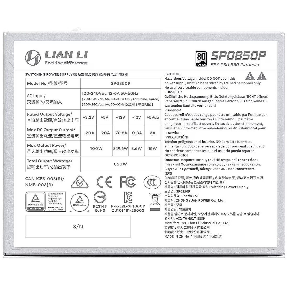 name - Lian Li SP Series Platinum 80 PLUS Platinum Netzteil, SFX, vollmodular, PCIe 5.1, ATX 3.1 - 850 Watt, weiß