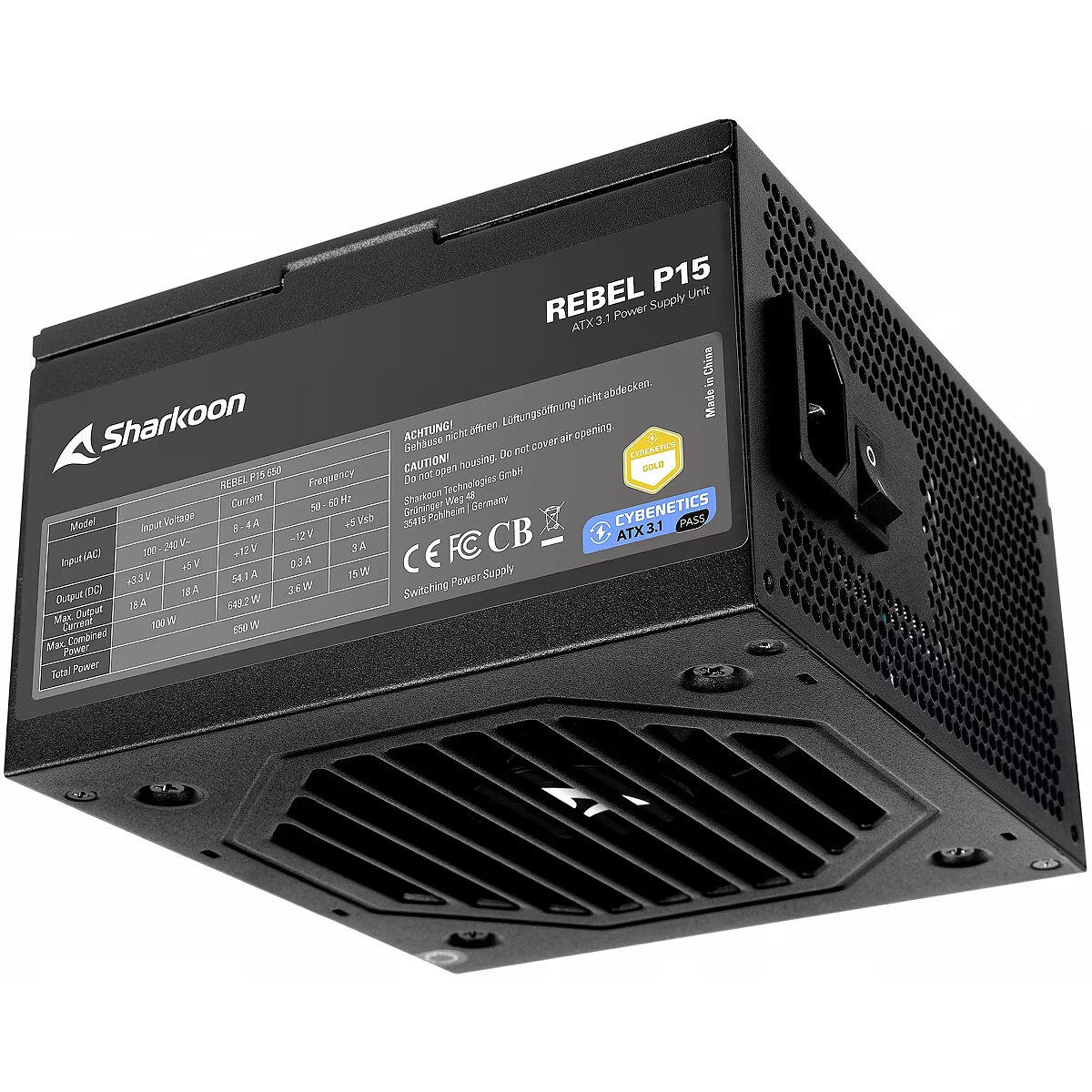 Sharkoon Rebel P15, 650W, Cybenetics Gold, ATX 3.1, PCIe 5.1