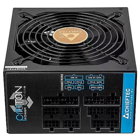 Мы предлагаем приобрести блок питания Chieftec с мощностью 850W, который получил сертификат энергоэффективности 80 PLUS Bronze.