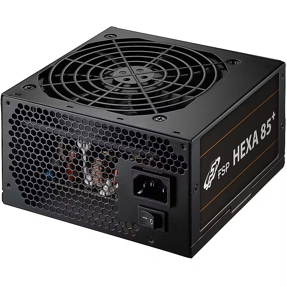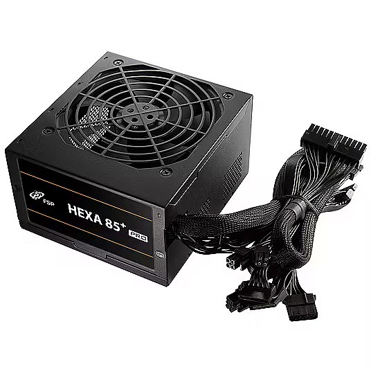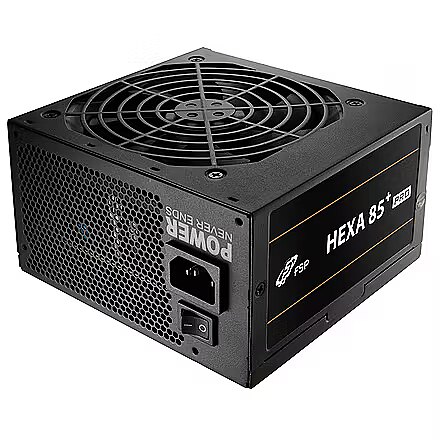 LongSummaryDescription - FSP HEXA 85+ PRO 650W. Total power: 650 W, AC input voltage: 100 - 240 V, AC input frequency: 50 - 60 Hz. Motherboard power connector: 20+4 pin ATX, Cabling type: Non-Modular. Purpose: PC/Server, Power supply unit (PSU) form factor: ATX, 80 PLUS certification: 80 PLUS Bronze. Product colour: Black, Cooling type: Active, Fan diameter: 12 cm. Cables included: CPU, PCIe, Peripheral (Molex), SATA