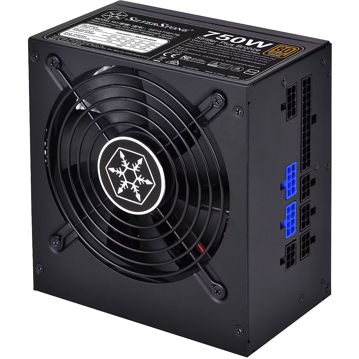 Для покупки доступен источник питания, произведенный Silverstone с выходной мощностью 750W. Продукту был присвоен сертификат энергоэффективности 80 PLUS Bronze.