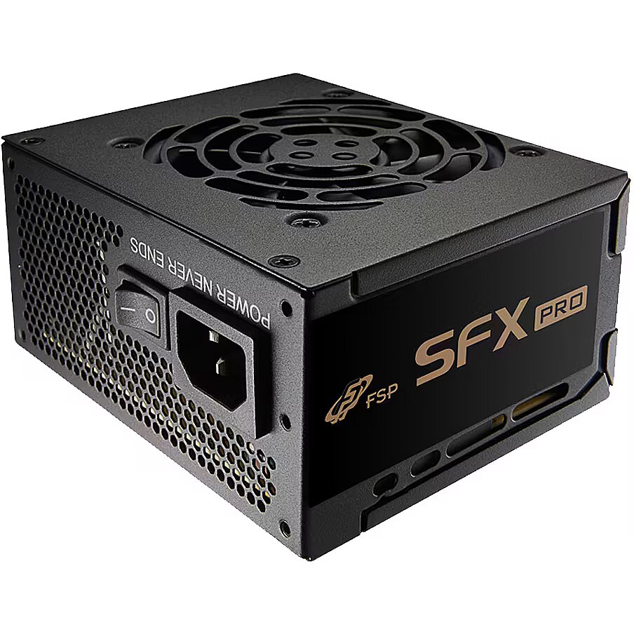 LongDesc - The SFX PRO series is a dream PSU that’s designed to deliver the best power, performance and efficiency to every mini PC enthusiast. Featuring the 80 Plus bronze certified efficiency, IEC62368 certified safety regulation, DC-DC Module, and black ribbon cables, the SFX PRO series came to the world with a mission “Never Let You Down” to provide users a stylish mini PC look as well as the best PC gaming experience!Intelligent Fan Speed ControlSFX Pro’s sleeve fan will automatically adjust its fan speed according to the PSU’s temperature. This helps to provide excellent airflow and low noise operation.80 Plus® Bronze CertificationSFX Pro series features 80 PLUS Bronze certification, saving energy through its high efficiency rating up to 85%.DC-to-DC Module DesignWith DC to DC structure, SFX Pro Series ensure you the outstanding conversion efficiency and offers reliability and stability.Compliant with IEC/EN 62368FSP complies with the latest green power technology, and provides a full array of additional safety approvals to keep designs ahead of the changing regulations. FSP has upgraded the majority of their power supplies to comply with the new IEC/EN 62368 standard for your gaming rig.All Black Ribbon CablesThe matte black coating and all black ribbon cables give your system a sophisticated look.SFX to ATX Adapter BracketAdapts to your individual requirements, not only does it fit into cases with the SFX form factor, but also it can be installed simply into regular ATX, Micro-ATX or Mini-ITX cases.Universal Use, Wide Input Range Power SupplyWide input voltage 100-240V, can ensure the stability of the system when the input voltage is not stable.