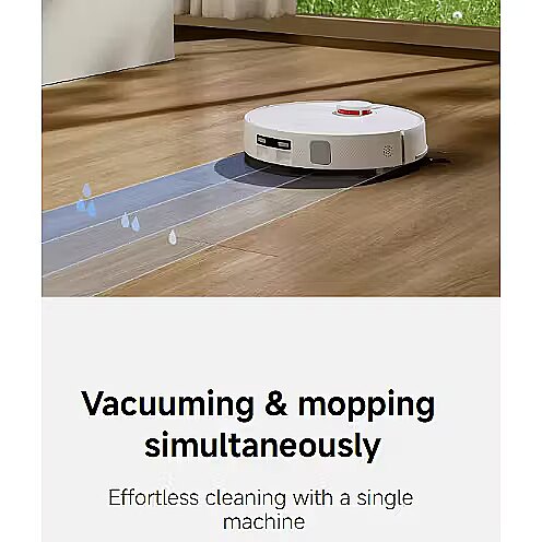 Description - Powerful suction for deep cleaning Highly efficient anti-tangle dust and hair removal. Multidimensional hair anti-tangle technology Effectively cleans up long hair with 5 steps Sweep, roll, gather, comb and suck. With a comb-like structure paired with a golden V-shaped main brush, the side and main brushes work in harmony for smooth hair suction. 4L large-capacity dust bag Highly efficient auto dust collection It can last up to 90 days before the dust bag requires emptying. Disposable bags ensure a mess-free and hands-free disposal process with minimal dust being stirred up-ideal for those with allergies. 10000Pa powerful suction fan blower Quick and powerful suction for stubborn dust Handle dust, paper scraps, pet food and cereal more easily with powerful suction. Choose between four power modes according to your needs. 3 levels for smart water output control Mop the house for thorough and precise dirt removal Equipped with a 210mL water tank and three water flow levels that can be set via the Xiaomi Home app, the robot vacuum delivers an even water flow, making it ideal for various floors and stains, offering smarter and more efficient cleaning. Extra-long 180-minute battery life Vacuum and mop large apartments in one go Featuring a 5200mAh high-capacity battery, it can vacuum and mop for up to 180 minutes on a full charge in standard mode. LDS high-precision mapping 360° house-wide scanning and mapping View 3D floor plans in Xiaomi Home app where multi-storey maps are generated and saved. Switch between maps anytime and track cleaning paths in real time. Multiple sensors Responsive detection for flexible obstacle avoidance Multiple sensors ensure the robot vacuum does not get stuck and is able to navigate complex environments such as stairs and door thresholds. Smart zone cleaning Convenient operation for a clean home Once mapping is complete, set cleaning zones and modes as needed via Xiaomi Home app, ensuring every corner of your home is cleaned thoroughly. Designated cleaning of areas around furniture Clean crumbs and food scraps promptly Supports targeted cleaning around furniture. Set zones, such as the dinner table or sofa, in Xiaomi Home app to promptly clean food scraps, scattered cat litter, spilled dog food and more. Customised settings for carpets Set according to your needs for more precise cleaning Thorough deep cleaning with two passes and strong suction for effective dust removal. Choose your cleaning preferences in the Xiaomi Home app, and tailor settings for each carpet for a worry-free clean. All-new compact size Saves space while blending well with any decor With its compact and sleek design, the base station integrates seamlessly into your home decoration while maintaining basic function like auto dust collection. Remote control via Xiaomi Home app Clean the house with one tap Control cleaning tasks remotely through Xiaomi Home app, even when you're out. Monitor and manage progress in real time, with personalised settings for convenient and efficient cleaning.
