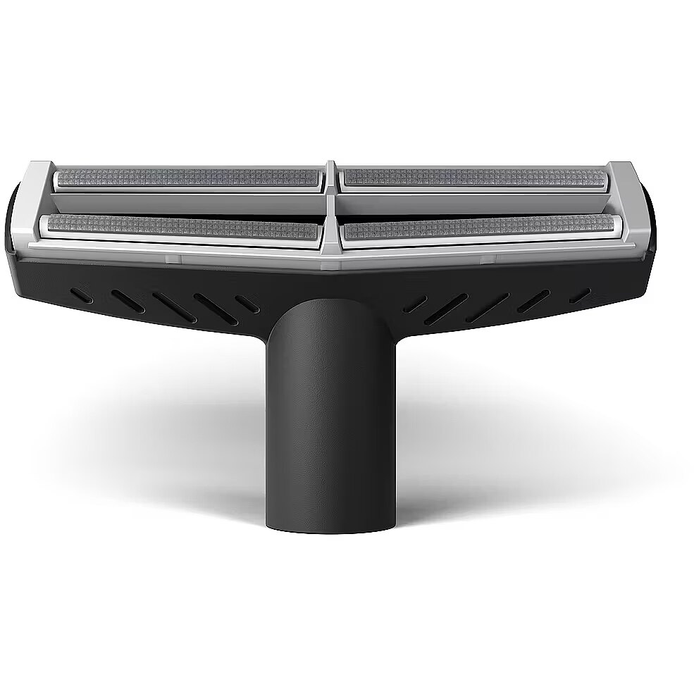 Телескопическая металлическая труба состоит из двух частей, а в комплект входят насадки: TriActive+ для различных поверхностей и кисточка-щётка для пыли. Шнур питания имеет длину 7 метров, что обеспечивает большой радиус действия при уборке. Пылесос поддерживает парковку как вертикально, так и горизонтально, а специально оптимизированные каналы минимизируют шум.