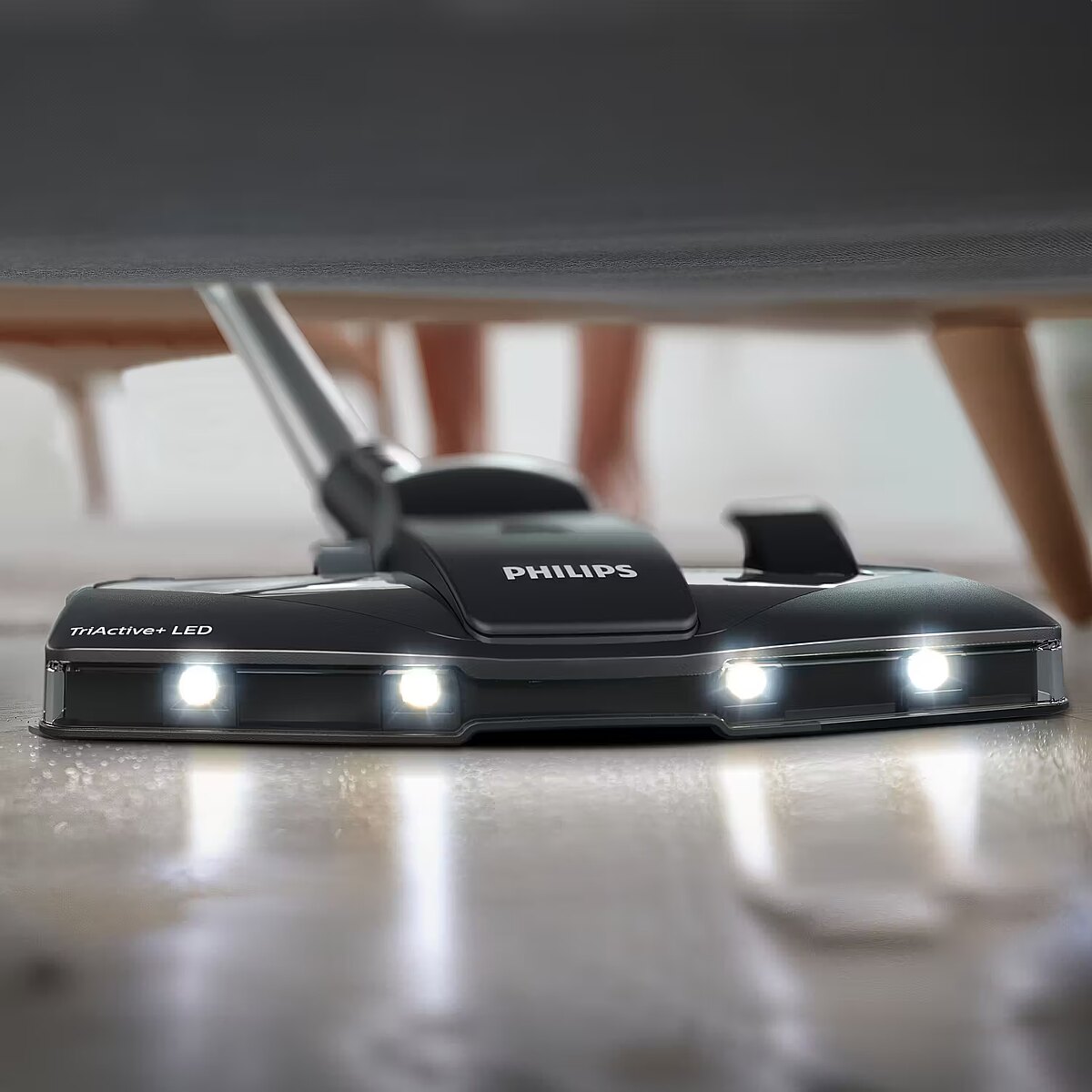 MediumDescription EN - Experience flawlessly clean floors with the Philips Performer LED 8000 series bagged vacuum cleaner. Our TriActive+LED nozzle uses advanced floor illumination technology to reveal hidden dust, while the powerful 900 W motor swiftly removes it. • 900 W and 99.9% dust removal