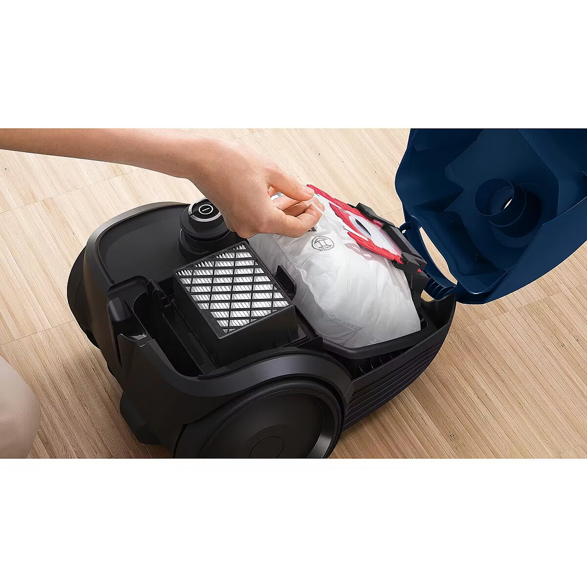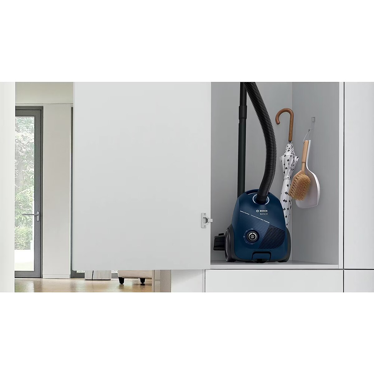 LongSummaryDescription - Bosch Serie 2 BGLS2BU2. Maximum input power: 600 W. Type: Cylinder vacuum, Cleaning type: Dry, Dust container type: Dust bag, Dust capacity: 3.5 L. Vacuum air filtering: HEPA, Dirt separating method: Filtering, Noise level: 80 dB. Product colour: Black, Blue, Silver