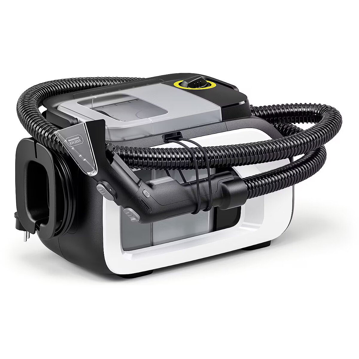 Thorough cleaning of textile fibers. Low residual moisture allows textile surfaces to dry quickly. Quick and easy cleaning thanks to efficient spray and suction technology and a powerful yet energy-saving motor. SE 3 Compact Home Washing Vacuum Cleaner: Specially developed accessories for deep cleaning