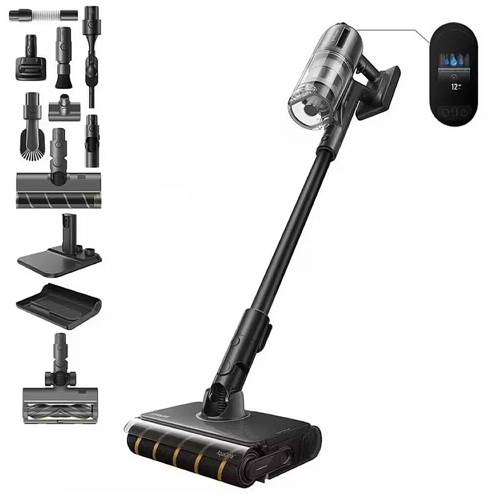 Main body, motorized wet roller, illumination multi-surface brush, illumination soft roller brush, motorized mini-brush, combination tool, rotating soft dusting brush, pet deshedding tool, soft dusting brush, extension rod, flexible adapter, extension hose, charging & storing mount.