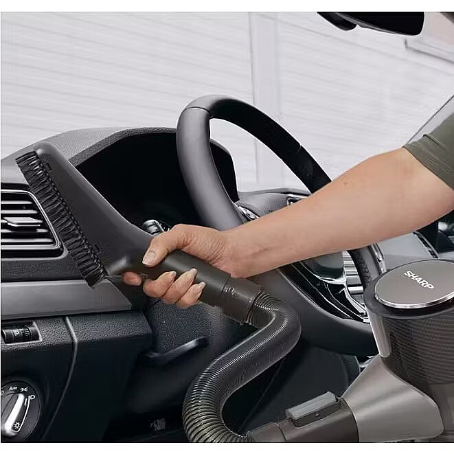 Description - Wszechstronny odkurzacz pionowy Sharp SA-VP4251GS 2w1: odkurza, działa jako odkurzacz ręczny z dodatkowymi akcesoriami do czyszczenia auta. Wyposażony w silnik o mocy 300 W i akumulator litowo-jonowy 2000mAh zapewniający cichą pracę nawet do 65 min prac. System filtracji z filtrem HEPA E12 dba o czystość powietrza, a elektroszczotka Antitangle Fleece Roller ułatwia sprzątanie. Sharp SA-VP4251GS Sharp SA-VPVP4251GS to wszechstronne urządzenie 2w1, które łączy funkcje odkurzacza pionowego i ręcznego. Wyposażony w bezszczotkowy silnik inwerterowy o mocy 300W oraz akumulator litowo-jonowy o mocy 2000 mAh, zapewnia do 65 minut pracy. Regulowana rura teleskopowa z siedmiostopniową regulacją długości (od 890 do 1100 mm) umożliwia dostosowanie do wzrostu użytkownika, a funkcja pionowego parkowania ułatwia przechowywanie. Dzięki innowacyjnemu rozwiązaniu Elektroszczotka Antitangle Fleece Roller z podświetleniem LED zapobiega zaplątywaniu włosów i sierści wokół wałka, a 4-stopniowy system filtracji z filtrem HEPA E12 wyłapuje 99,5% zanieczyszczeń. Pojemnik na kurz o pojemności 0,75 litra jest łatwy do opróżnienia, a czas ładowania baterii wynosi około 4-6 godziny. Odkurzacz pionowy Sharp SA-VP4251GS zwalcza bałagan w domu i samochodzie Odkurzacz pionowy Sharp SA-VP4251GS to idealne rozwiązanie dla osób poszukujących urządzenia, które sprawdzi się zarówno w domu, jak i w samochodzie. Dzięki zestawowi praktycznych ssawek i szczotek, odkurzacz bezprzewodowy umożliwia dokładne czyszczenie różnych powierzchni, w tym trudno dostępnych miejsc w samochodzie, takich jak schowki, kratki wentylacyjne czy przestrzenie wokół siedzeń. Bezprzewodowa konstrukcja oraz możliwość przekształcenia w odkurzacz ręczny sprawiają, że sprzątanie staje się wygodne i efektywne, niezależnie od miejsca użytkowania. Higieniczna czystość i komfort pracy: Akumulator litowo-jonowy Aż 65 min pracy bez ładowania Wysokiej klasy filtr HEPA E12 Ciche działanie (do 78 dB+) w trybie turbo Lekka (3,85 kg) i samostojąca konstrukcja Wymienne końcówki i zestaw samochodowy 750 ml zbiornik na kurz z funkcją łatwego opróżniania Jedno ładowanie i aż 65 minut działania Dzięki nowoczesnemu akumulatorowi litowo-jonowemu o mocy 2000mAh, odkurzacz pionowy Sharp SA-VP4251GS oferuje do 65 minut nieprzerwanej pracy w trybie Eco, co pozwala na posprzątanie dużej powierzchni na jednym ładowaniu. W przypadku intensywniejszego sprzątania, tryb Turbo zapewnia 12 minut pracy z maksymalną mocą. Czas pełnego naładowania baterii wynosi ok. 4-6 godzin, co umożliwia szybkie przygotowanie urządzenia do kolejnego użycia. Funkcjonalny i wygodny projekt Odkurzacz bezprzewodowy Sharp SA-VP4251GS został zaprojektowany z myślą o maksymalnej wygodzie użytkownika. Rura teleskopowa z 7-stopniową regulacją długości pozwala na dostosowanie do indywidualnych potrzeb, zapewniając komfort podczas sprzątania. Funkcja pionowego parkowania umożliwia łatwe odstawienie odkurzacza w dowolnym miejscu bez konieczności opierania o ścianę czy użycia stojaka. Kolorowy wyświetlacz LCD poinformuje o stanie baterii i trybach pracy. Dodatkowo, Elektroszczotka Antitangle Fleece Roller z podświetleniem LED ułatwia sprzątanie w słabo oświetlonych miejscach, a 4-stopniowy system filtracji dba o czystość wydmuchiwanego powietrza. To doskonały odkurzacz dla alergików i osób szczególnie wrażliwych.