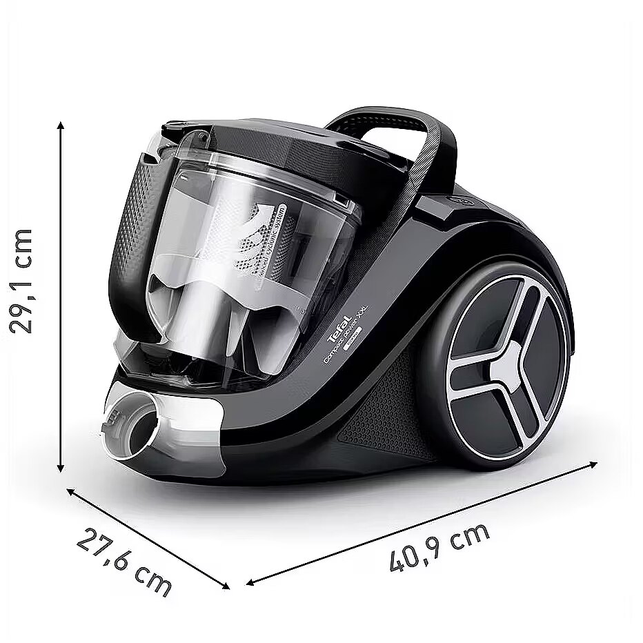 MediumDescription EN - The most powerful XXL bagless vacuum cleaner by Tefal The Tefal Compact Power XXL Bagless Vacuum Cleaner offers excellent cleaning results with a 900 W max. low consumption motor* in a compact design. Its advanced 3-level filtration captures over 99.98% of dust particles