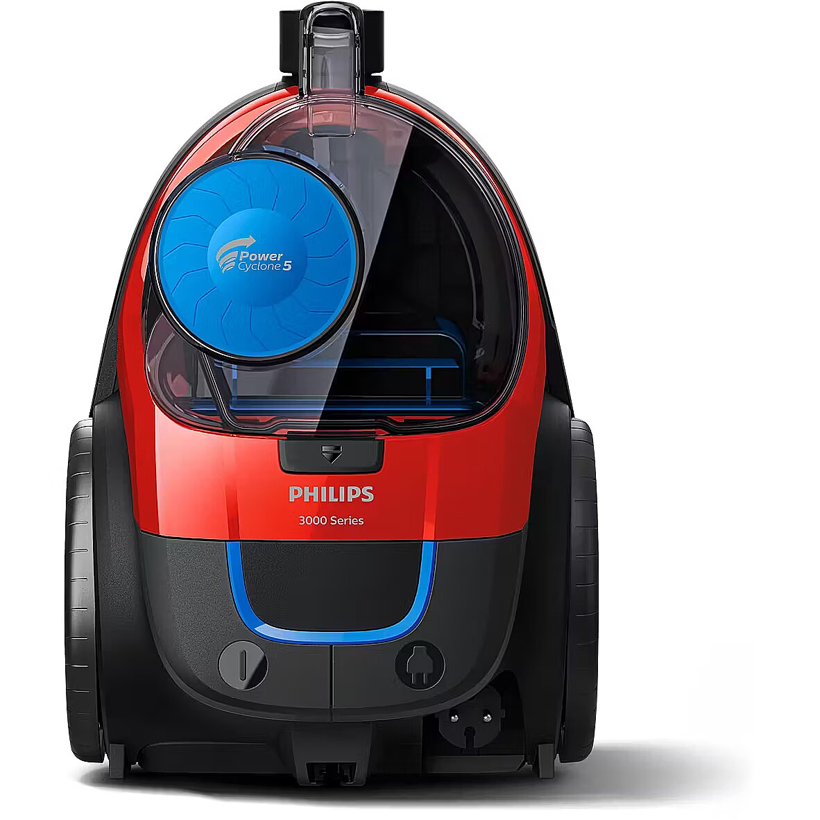 Description - Compact, yet powerful With higher dust pick-up and PowerCyclone 5 Philips PowerPro Compact picks up more dust and filters out 99.9% for clean floors and fresh air. Powerful cyclonic action and advanced design put dirt in its place and keep it there to control dust, even while emptying. Remarkable cleaning results The TriActive nozzle applies 3 cleaning actions in one go PowerCyclone 5 technology separates dust from air 99.9% dust pick-up* to deliver high cleaning 900W motor for strong suction power Effortless cleaning ActiveLock couplings easily adjust to every task Large wheels for better motion control Easily emptied with one hand to control dust Soft brush integrated into handle, always ready to use Clean air filter system Allergy H13 filter system captures >99.9% of fine dus