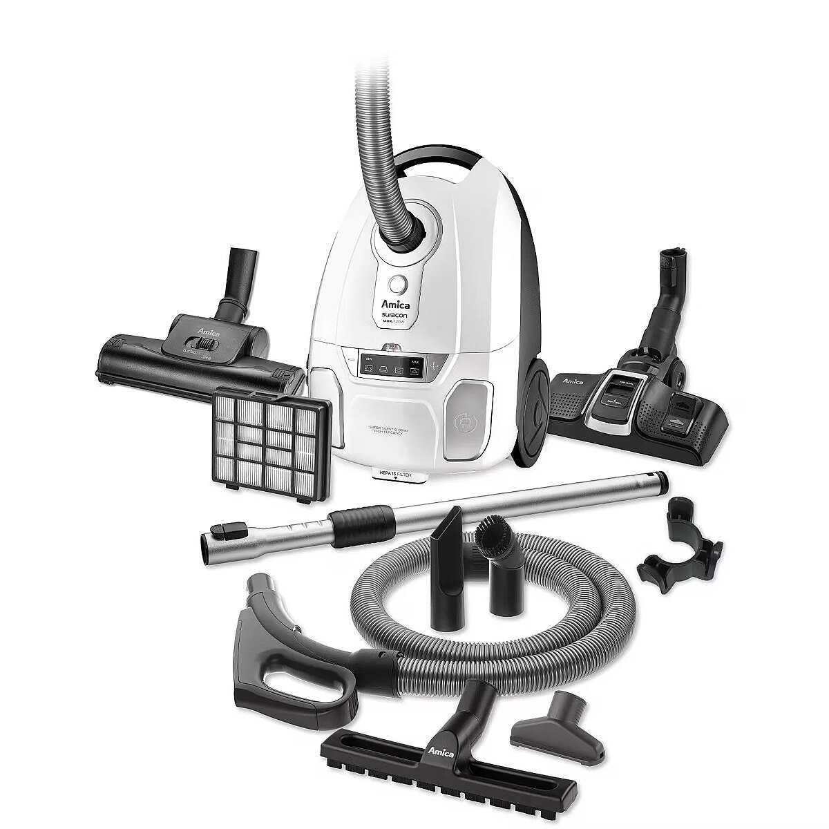 Accessories included - Turboszczotka ssawkoszczotka uniwersalna, Ssawkoszczotka do parkietu, Szczotka do książek, Ssawka do tapicerki, Ssawka do szczelin, Uchwyt na rurę na dodatkowe ssawki, Metalowe rury teleskopowe