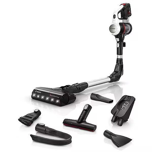 LongSummaryDescription - Bosch BBS711W. Product type: 2-in-1 stick vacuum, Dust container type: Bagless, Product colour: White. Cleaning type: Dry, Vacuum air filtering: Hygiene Filter, Dirt separating method: Filtering. Power control: Electronic, LED indicators: Battery level. Power source: Battery, Battery voltage: 18 V, Runtime: 40 min. Width: 252 mm, Depth: 204 mm, Height: 1315 mm