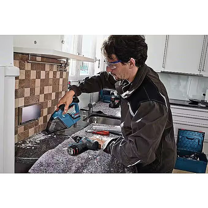 ShortSummaryDescription - Bosch GAS 10,8 V-LI, Dry, Filtering, 900 l/min, Bagless, Blue, 77 mm