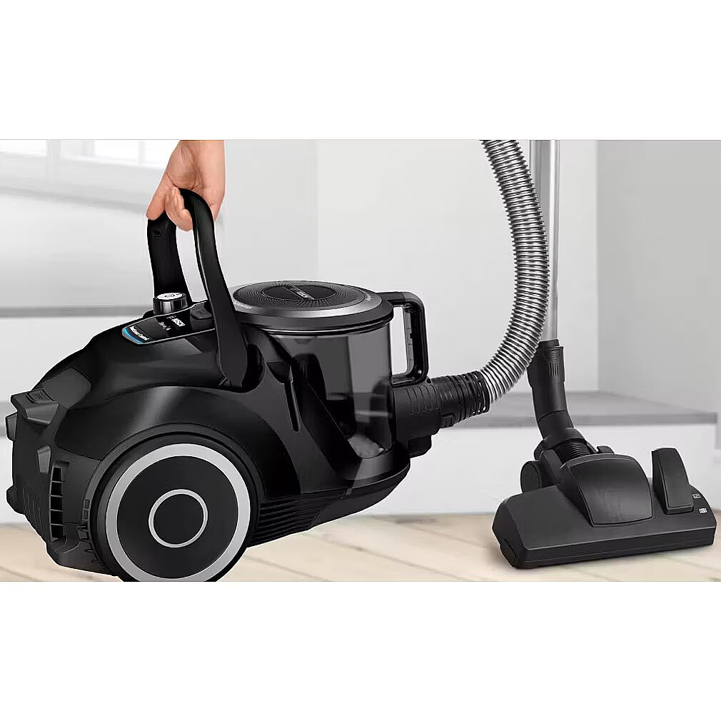 Technical_details - Type: canister vacuum cleaner Color: Black EAN: 4242005282180 Manufacturer No.: BGC41XSIL Series: Series | 6 Application: dry cleaning Floor type: hard floor, parquet/laminate, carpet Filter principle: bagless Radius of action: 10 meters Power: 700 watts Loudness: 68dB Technology: Smart Sensor Control Storage: parking function, automatic cord storage Equipment: furniture brush : crevice nozzle, combination nozzle, hard floor nozzle, XXL upholstery nozzle : 2 comfortable device handles Filter: UltraAllergy filter, washable filter Volume: 2.4 liters Power supply: 220-240 volts, 50/60 Hz, mains operation Accessories: crevice nozzle, combination nozzle, hard floor nozzle, XXL upholstery nozzle Dimensions: Width: 324mm x Height: 267mm x Depth/Length: 474mm Weight: 8.3kg