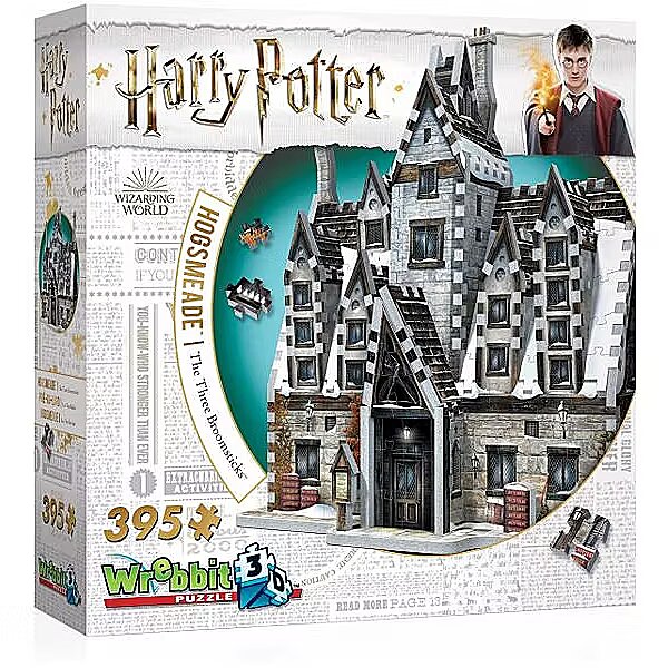 Description - Harry Potter Fans! Join us at The Three Broomsticks, the famous pub in Hogsmeade, where wizards of all ages gather to enjoy a delicious butterbeer. This uniquely designed 3D puzzle is a fun challenge that will magically bring together both young and old fans of Harry Potter. Hogsmeade The Three Broomsticks is part of the official Harry Potter Wrebbit 3D puzzle series. Combine it with other 3D models and watch as the magical world of J.K. Rowling comes to life right before your eyes. The perfect gift for any student! 395 high-quality pieces. Size after assembly: 31 x 16.5 x 30.5 cm.