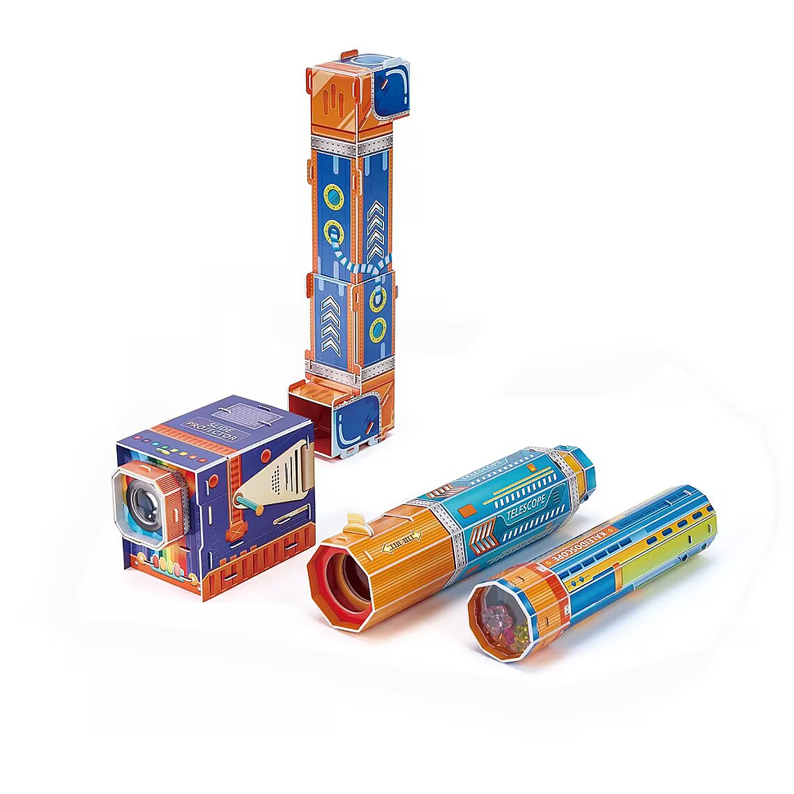 Description - Puzzle 3D Zestaw z kolorami i światłem Dzięki projektorowi wyświetlisz obrazy, luneta umożliwi obserwowanie przedmiotów z dalekiej odległości, kalejdoskop pozwoli na oglądanie kolorowych i symetrycznych wzorów, a peryskop zapewni świetną zabawę przy oglądaniu obiektów lub scen znajdujących się poza bezpośrednią linią wzroku.