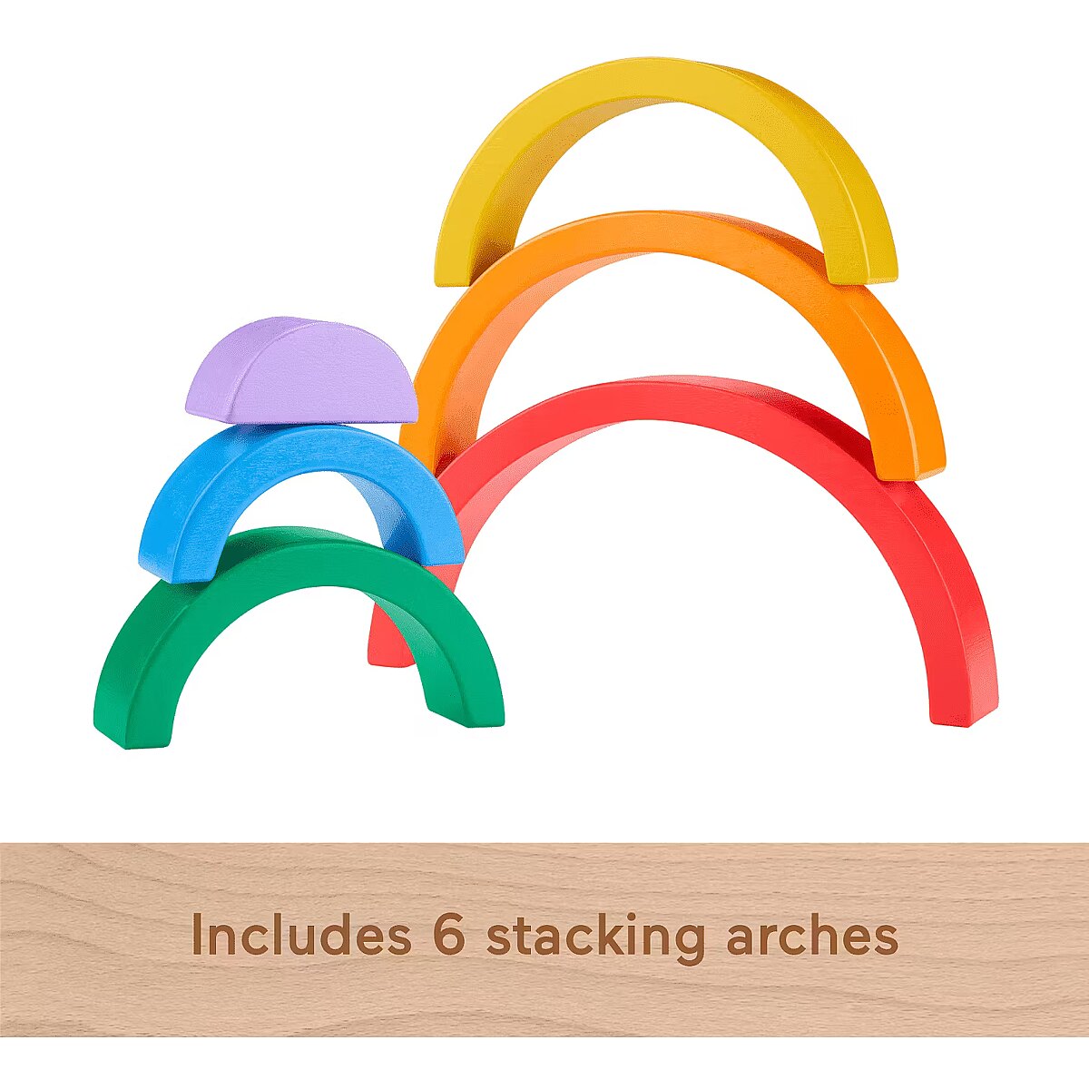 LongProductName - Wooden Stacking Rainbow For Toddlers, 6 Wood Pieces