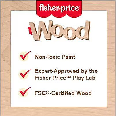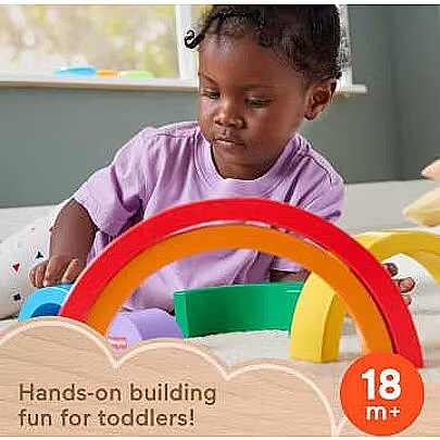 LongDesc - Toddlers are in for lots of skill-building fun with the Wooden Stacking Rainbow toy from Fisher-Price®. Six chunky, easy-to-grasp rainbow arches help introduce your child to colors, sizes and how things fit together. Each piece is made with wood from well-managed FSC®-certified forests and can help foster fine motor skill development as kids play. (FSC C004225, 2019)