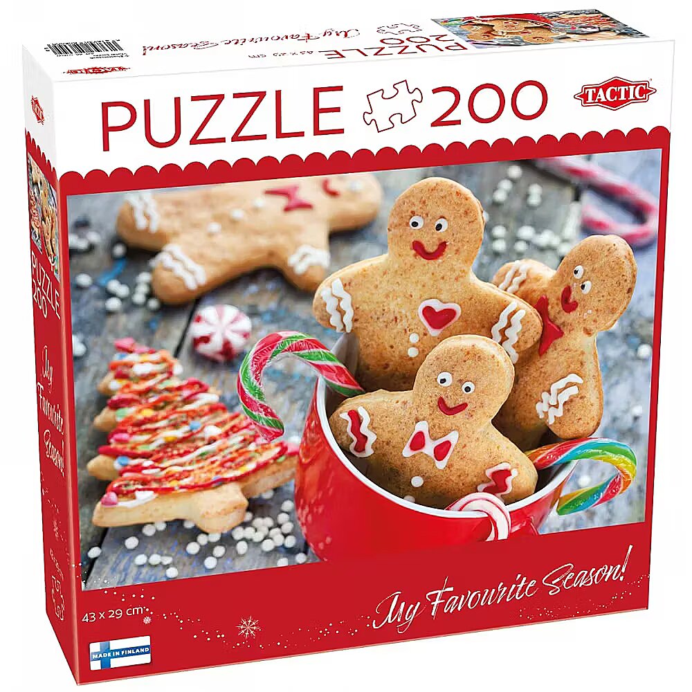 Description - 200-Piece Puzzle - Gingerbread Sweeties Tactic puzzles are carefully designed for both puzzle enthusiasts and beginners alike. We offer only the highest quality, in both images and materials. Welcome to the exciting world of Tactic puzzles! This special Puzzle Lovers Christmas collection features beautiful holiday-themed designs that create a magical festive atmosphere.