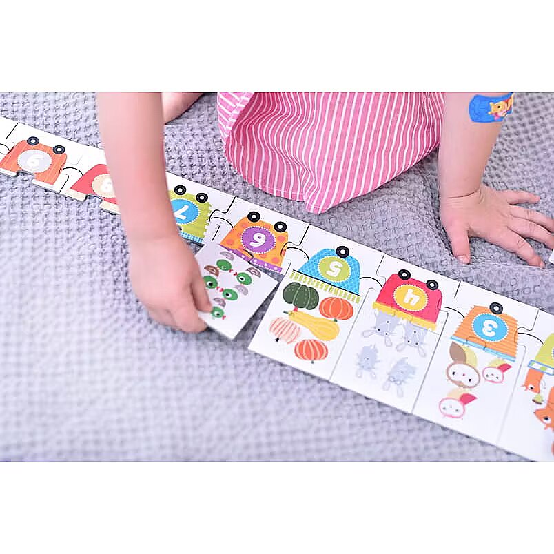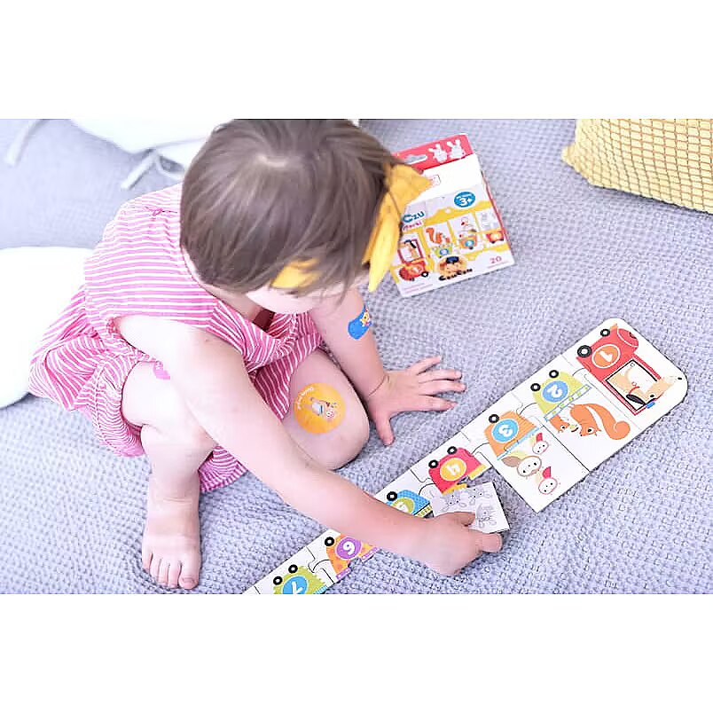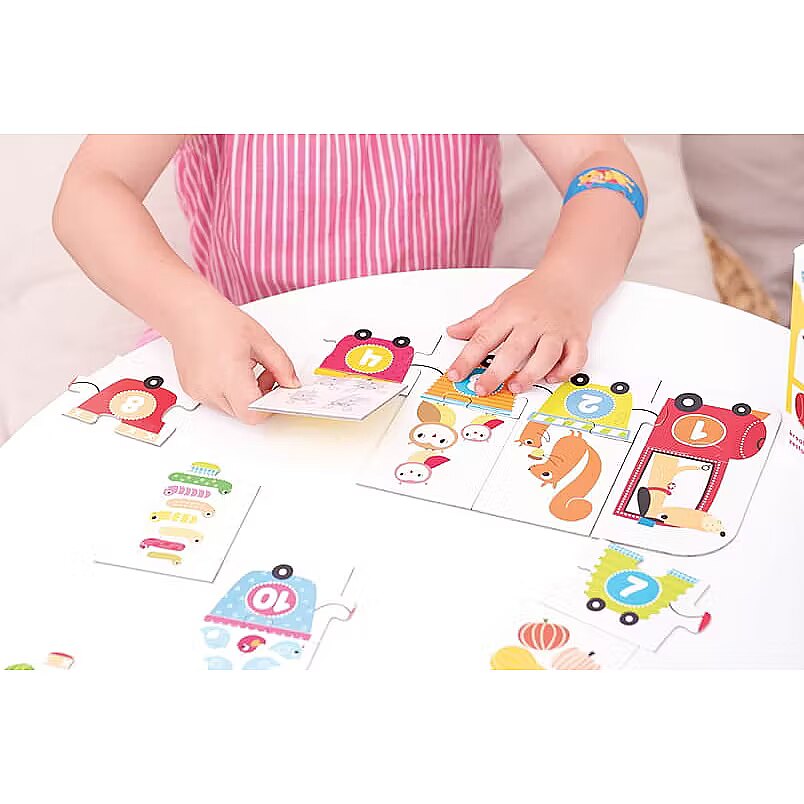 Description - Puzzles numbers Complete the puzzle and find out what the numeral train carries. You can also train counting to 10 together. The long puzzle (68 cm!) Consists of large, easy to connect elements. Stacking is a great training for perceptiveness and hand-eye coordination. Playing with puzzles is also a fun way to introduce children to the fascinating world of numbers and develop their imagination. The small, travel packaging means that you can always have puzzles with you.