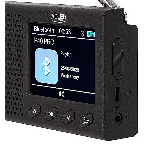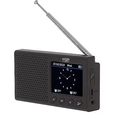 Description - Radio AD1198 Discover unlimited possibilities of listening to music with the Adler AD 1198 portable radio, which combines classic radio entertainment with modern technologies. This device is the perfect companion for travel, picnics and everyday use at home. Thanks to the FM 87.5-108 MHz band and the RDS function, the radio allows you to receive a wide range of radio stations with additional information about the program and the artist. The radio is equipped with Bluetooth 5.0, which allows it to seamlessly connect to smartphones, tablets and other devices, allowing you to stream your favorite music wirelessly. The bright and clear screen displays all important information, making it easier to operate the radio. The built-in telescopic antenna guarantees excellent reception even in difficult conditions. The device can be conveniently charged using the included USB cable and has a built-in 1200 mAh battery. The multilingual menu is a great advantage of the device, we can choose Polish, English, German, French and many other languages, which makes the radio friendly to users in different regions. You can customize the radio's appearance to your preferences with three backlight levels and two clock styles. The Adler AD 1198 radio combines tradition with modernity, offering excellent sound quality, wireless connectivity and ease of use. With its compact dimensions, powerful speaker and many customization features, it is the perfect choice for anyone looking for a universal and portable audio device. Enjoy your favorite music and radio stations wherever you are with the Adler AD 1198 portable radio. Adler AD 1198 Portable radio with Bluetooth and color LCD display - Your music wherever you are.