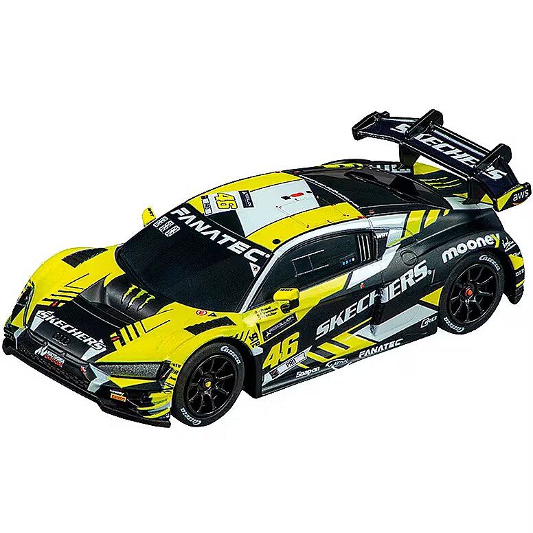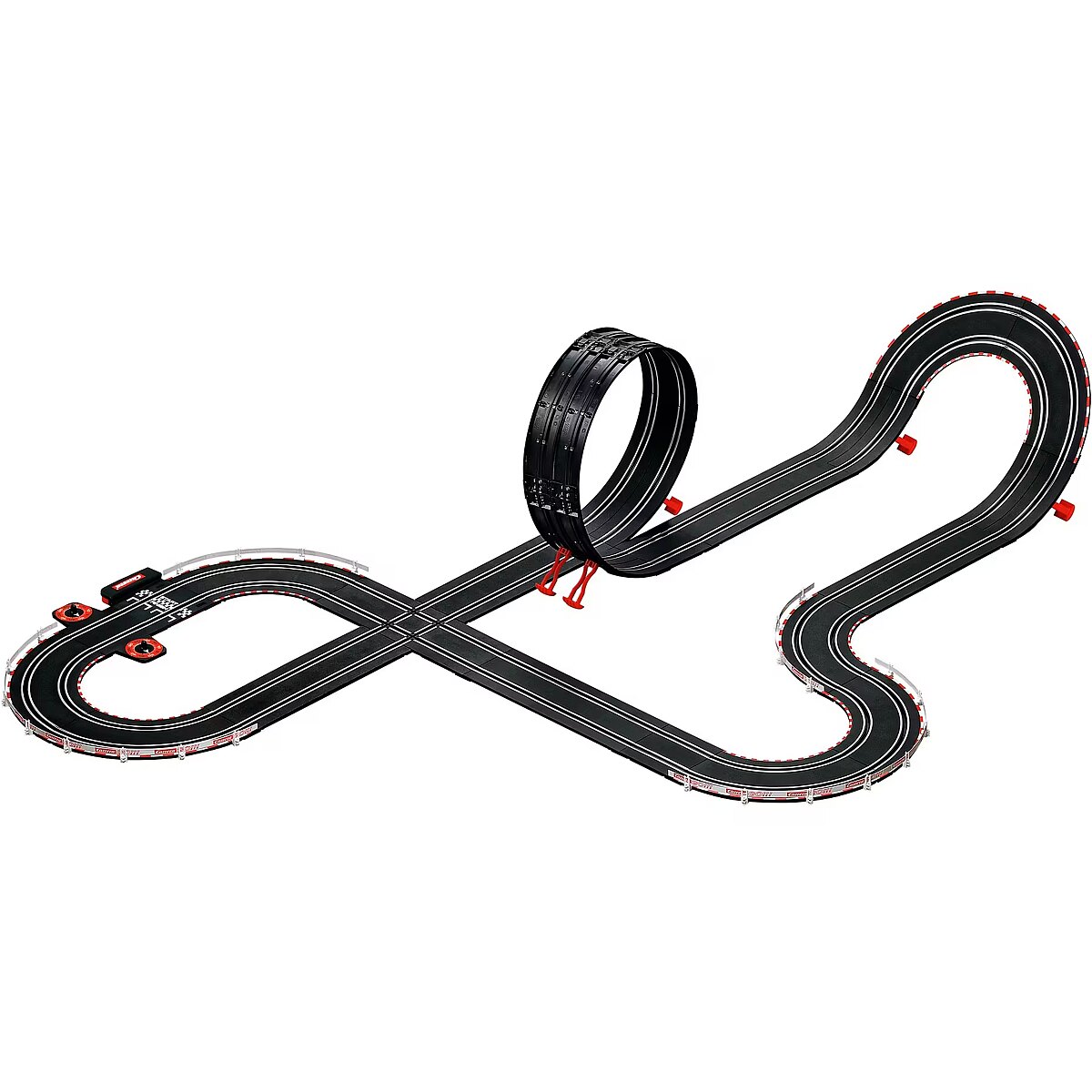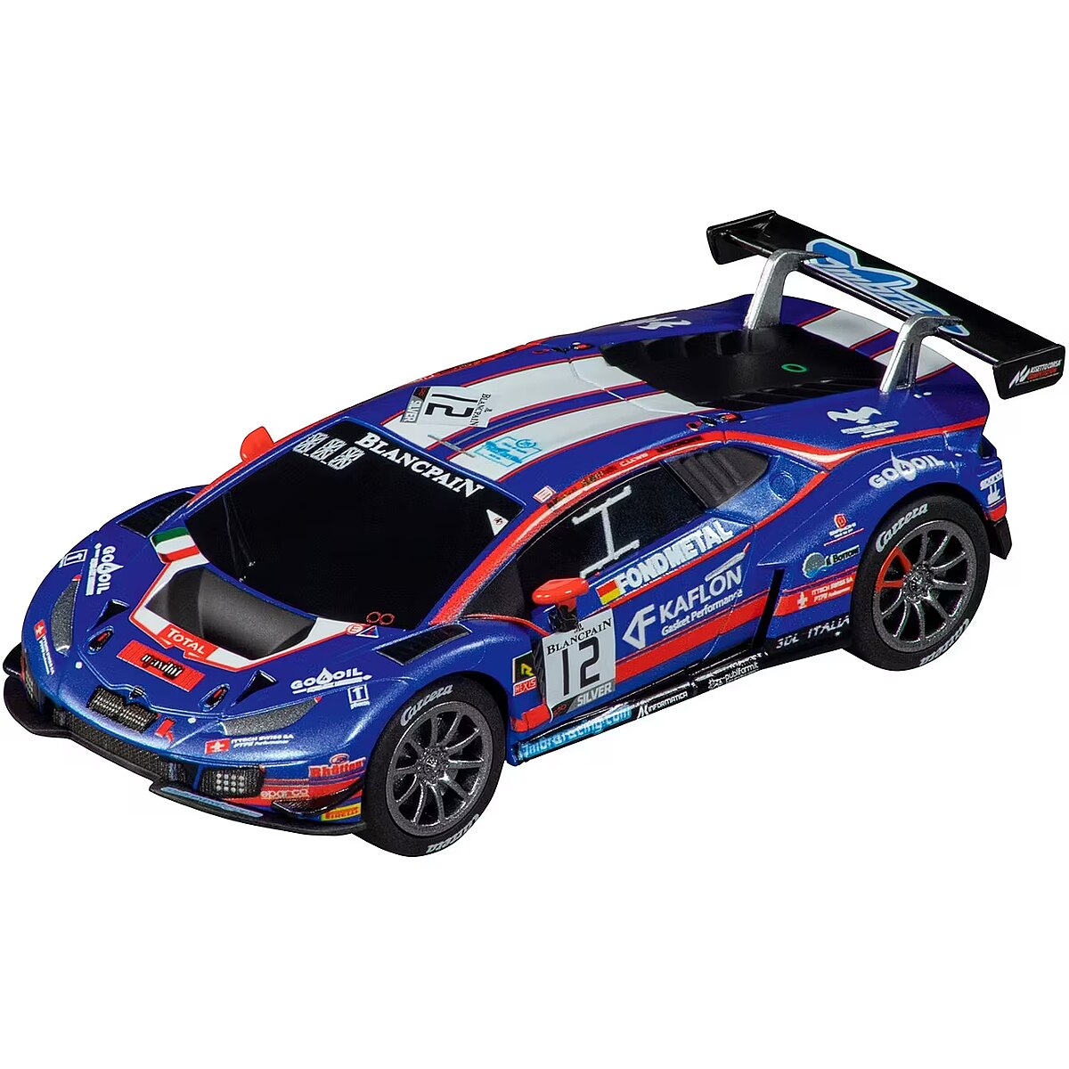 Technical_details - 6.3 meter track length and two stylish GT racing cars: This is the “GT Super Challenge” racetrack set from the Carrera GO!!! series. With the two hand controls included, the Audi R8 LMS GT3 evo II racing car, driven by nine-time motorcycle world champion Valentino Rossi, competes against the Lamborghini Huracán GT3 “No. 8". Crossing, fly-over and a nerve-wracking loop ensure unique racing fun. Item no.: 100025226 Kind of racetrack EAN 4007486625631 Manufacturer no. 20062563 GO!!! series Contents/equipment 2 vehicles, GO!!! connection rail, crossing, hand controller, lap counter rail, 3 straights 100 mm, 3 straights 114 mm, 2 curves (1/90°), 2 straights 342 mm, looping set, GO !!!-Transformer System Carrera GO!!! Number of drivers 2 drivers Age recommendation from 6 years Target group school children Vehicle(s) type analogue Caution: Danger of suffocation due to small parts that can be swallowed! Roadway type solid tracks Control connection wired Warnings Warning: Not suitable for children under 36 months! Dimensions width: 1,750 mm x depth/length: 1,220 mm