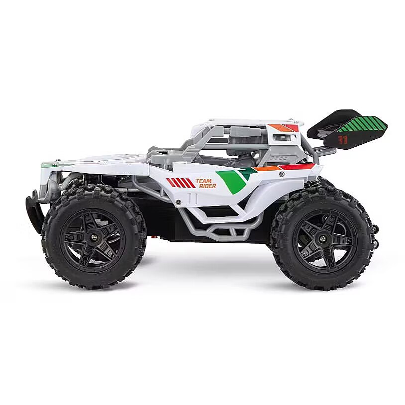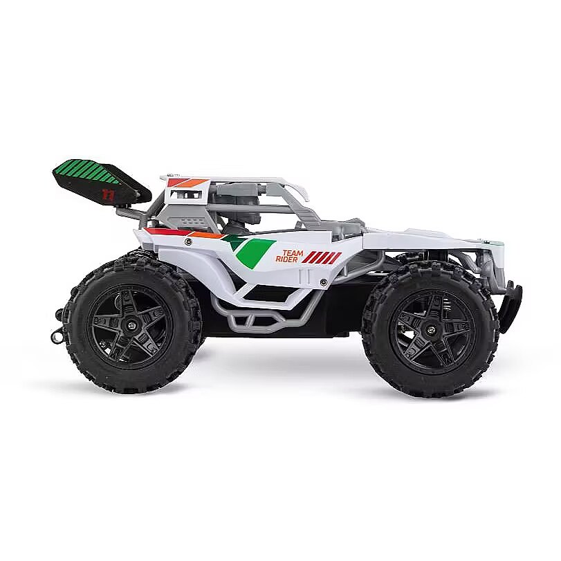 This buggy attracts stares and glances wherever it is in action: the Carrera RC Lime Buggy's striking lime green and yellow paint job never fails to catch the eye; even more so with its pneumatic tyres and all-round suspension, making it ideal for exploratory trips into rough terrain. Ready to race