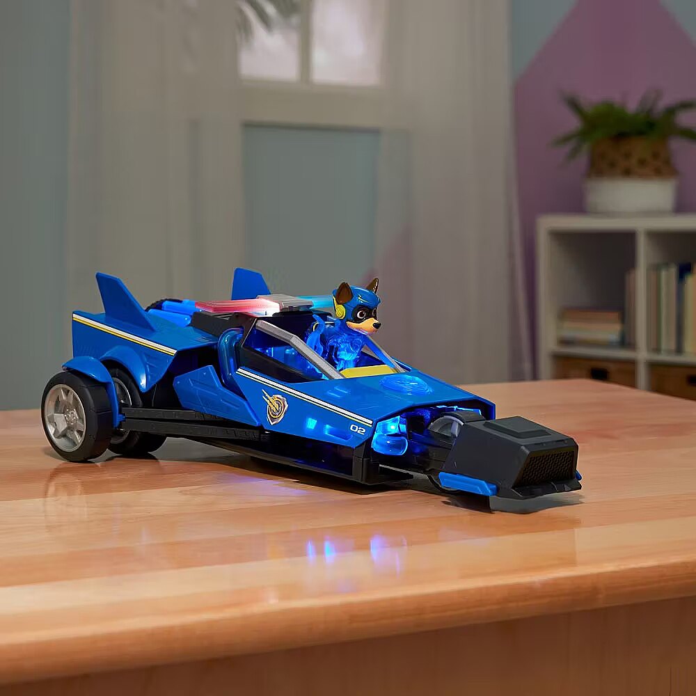 Name - Spin Master Paw Patrol: The Mighty Movie, Chase's Deluxe Superhero Rocket Vehicle, Toy Vehicle (Blue/Black, Includes Chase Figure)