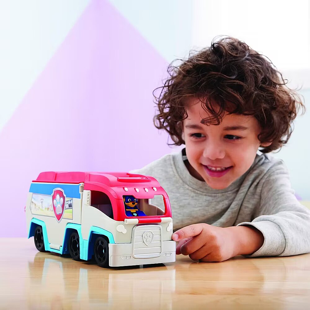 LongDesc - Get ready to launch and race to your next big rescue mission with the Pup Squad Patroller and a collectible, Mighty Pups Chase, Pup Squad Racer just like you see in PAW Patrol: The Mighty Movie! Measuring 10 inches long, and 5 inches tall, this pint-sized vehicle playset features an exciting transformation from a PAW Patroller toy truck, into an awesome mobile command center, complete with vehicle launch ramp and toy storage space, for additional Pup Squad race cars (each sold separately)! Tilt the cab roof forward to place the Chase race car into the driver’s seat, before pushing the patroller forward on six real working wheels. Then, when it’s time for a high speed rescue, remove Chase from the Cab, close the roof, the put Chase on top of the cab to engage the transformation, which pops the trailers roof open to convert it into a launch ramp, and lowers the side walls to reveal a staging area and additional vehicle storage space! When playtime is over, fold the ramp and raise the walls to return into truck-mode, so you can pack up your toy car in the patroller, then take them with you anywhere, for exciting action on the go! With PAW Patrol toys, a kid can explore his or her imagination and develop their motor skills through pretend play while reliving their favorite scenes from the movie! For even more fun and exciting PAW Patrol series-inspired missions, expand your world of PAW Patrol by collecting all the Pup Squad Racers and all the PAW Patrol movie toys, like the awesome Aircraft Carrier HQ and the special edition PAW Patrol toys for girls and boys, like the Mighty Pups, Aqua Pups and Big Truck Pups toy figures and playsets (each sold separately)! Enjoy endless PAWsome adventures with your favorite hero pups with the PAW Patrol: The Mighty Movie, Pup Squad Patroller!