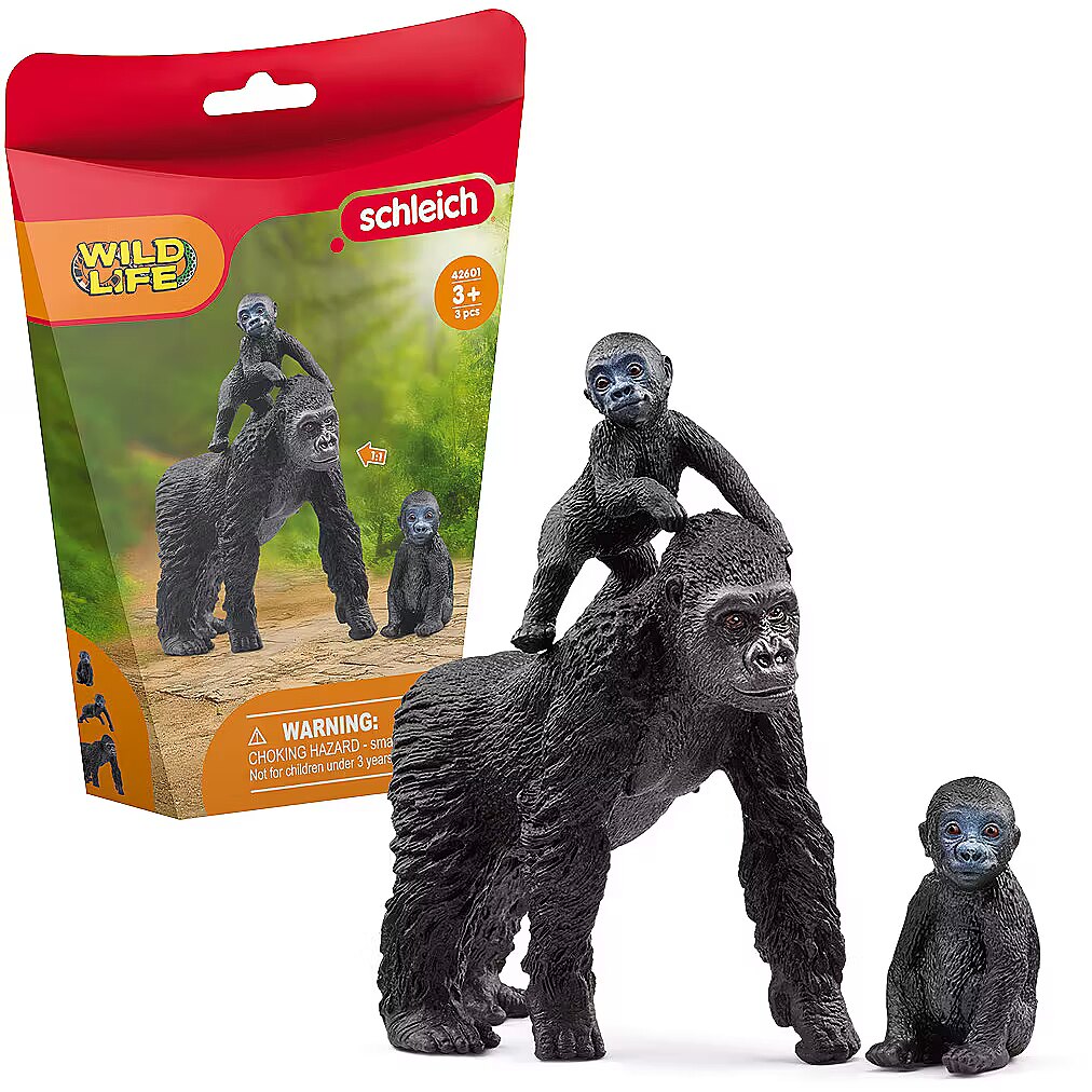Technical_details - What an adorable lowland gorilla family! The mother watches over her two little ones - one looks tired and sits sleepy on the floor. Maybe it needs a nap? But the other baby gorilla is very alert and wants to climb onto its mother's back. The baby monkey's arms fit snugly around the mother's back. This way it definitely won't fall down. Item no.: 1866382 Kind of game piece EAN 4059433654010 Manufacturer no. 42601 Wild Life series Contents/equipment 1x gorilla mother, 2x gorilla baby Age recommendation from 36 months Target group of kindergarten children Material: Plastic Warnings Warning: Not suitable for children under 36 months! Caution: Danger of suffocation due to small parts that can be swallowed!