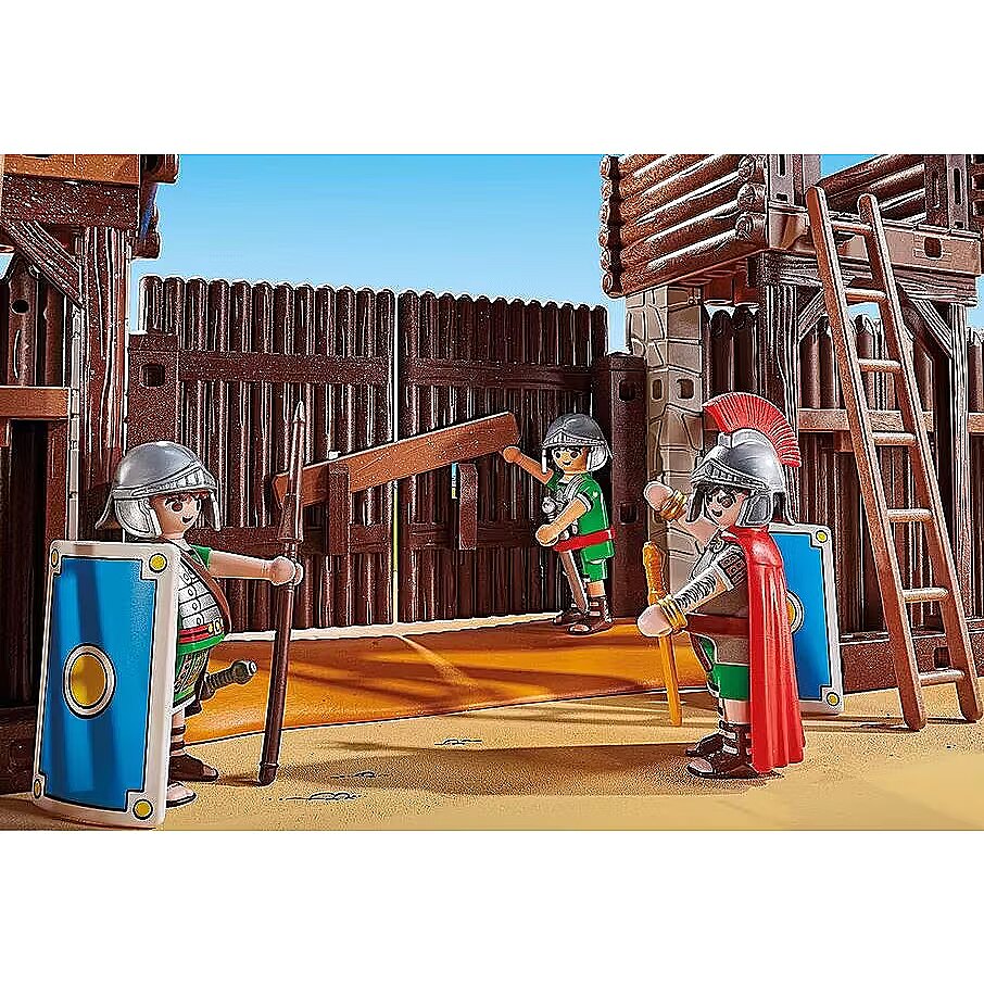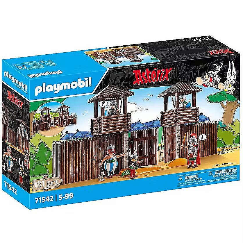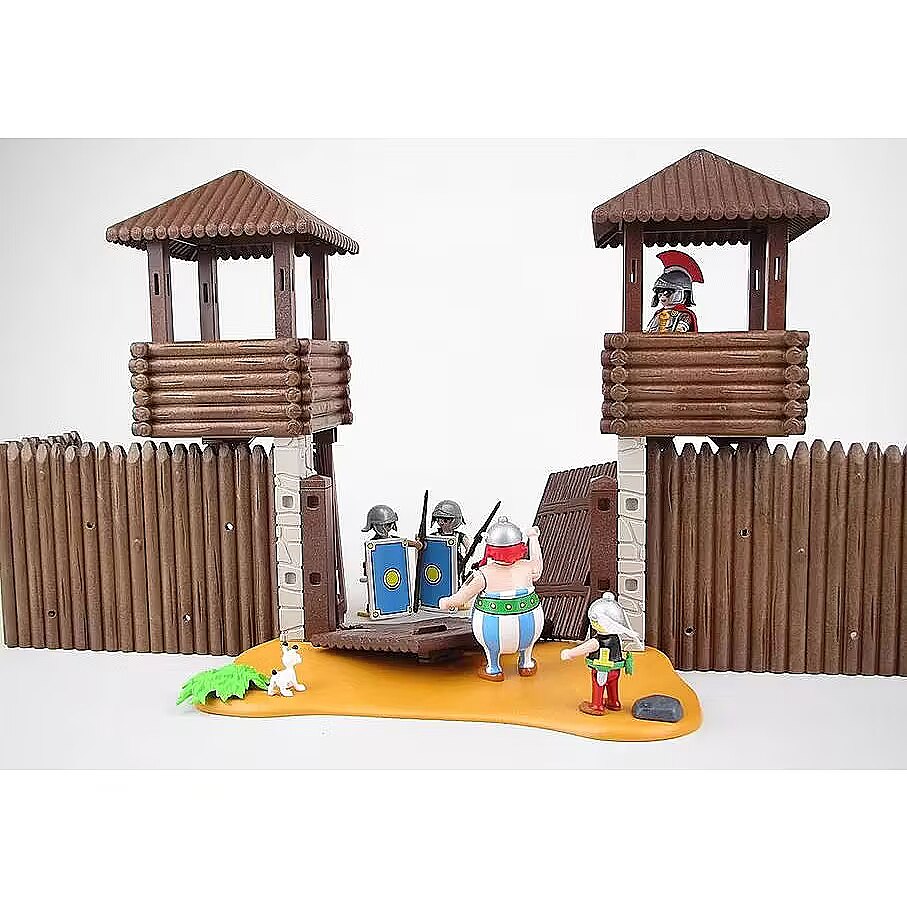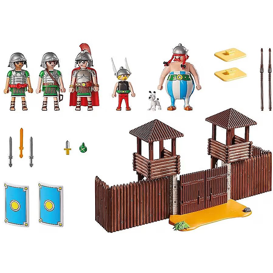 Accessories included - Figurki: Asteriks, Obeliks, centurion Dremordus, 2 rzymskich żołnierzy Zwierzęta: Idefiks Akcesoria: 1 rzymski obóz z 2 wieżami strażniczymi i podstawą, 1 kępka trawy, 1 kamień, 1 hełm Asteriksa z piórami, 1 hełm Obeliksa, 3 rzymskie hełmy, 2 tarcze, 2 włócznie, 3 miecze, 2 podstawki pod figurki, 2 kokardy do włosów, 1 fiolka, 2 bransolety, 1 peleryna