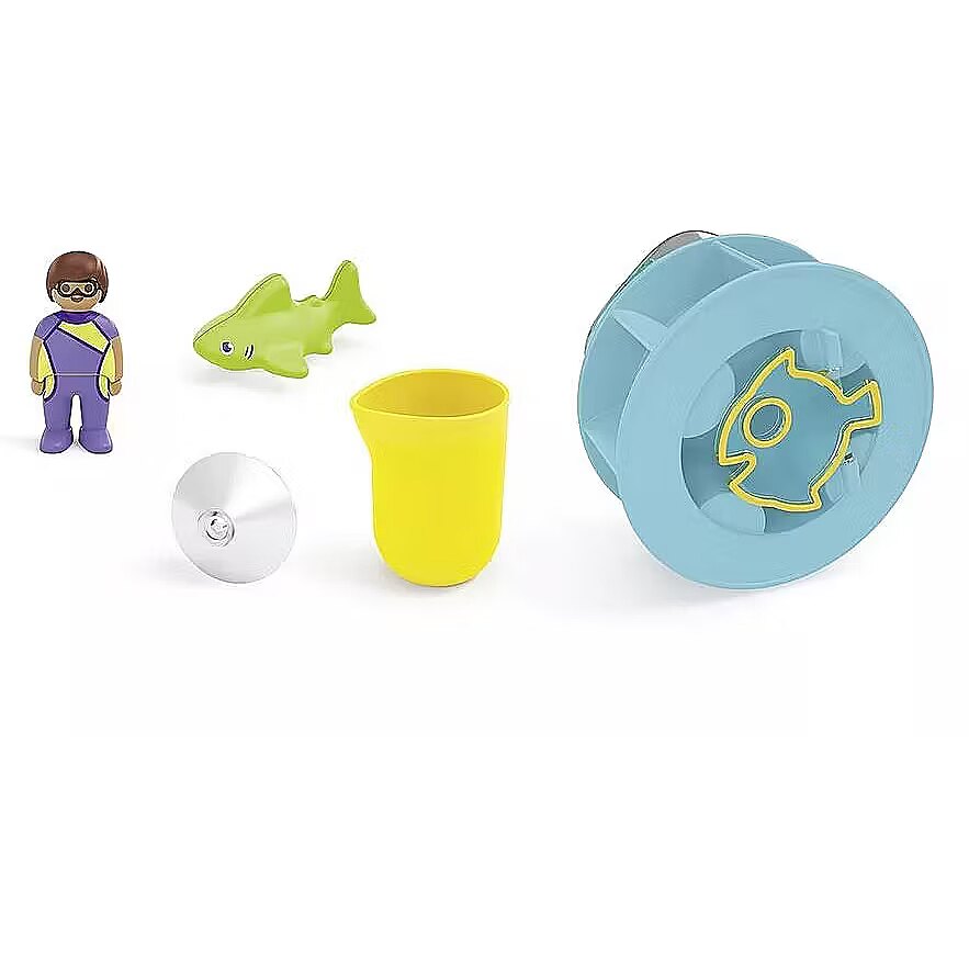 Accessories included - Figurki: 1 nurek Zwierzę: 1 mały rekin Akcesoria: 1 młyn wodny z przyssawką, 1 kubek na wodę