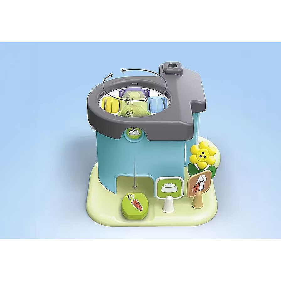 Description - W hotelu mali miłośnicy zwierząt opiekują się swoimi ulubionymi pupilami. Dozownik pokarmu, wbudowany w dach, ćwiczy zdolności motoryczne, promuje myślenie przyczynowo-skutkowe, a jednocześnie uczy wiedzy o kolorach i odpowiednim pożywieniu dla zwierząt. Dodatkowe akcesoria dołączone do wszystkich czterech zwierzątek dostarczają nowych pomysłów do zabawy i opowiadania pierwszych historii. Wymiary: 22 x 21 x 16 cm (dł. x szer. x wys.). Korzyści edykacyjne zestawu dla rozwoju maluchów: Rozwój motoryki małej poprzez ustawianie i poruszanie figurek, a także pchanie taczki, ładowanie i rozładowywanie taczki, sortowanie kolorowych elementów karmy dla zwierząt, obracanie dachu, otwieranie/zamykanie drzwi, umieszczanie znaków/kwiatków. Nauka rozpoznawania i rozumienia związków przyczynowo-skutkowych: Gdzie należy umieścić elementy pokarmu i jak obrócić dach, aby spadły ze zjeżdżalni? Nauka kolorów: Każde zwierzę ma przypisany kolor, w którym zaprojektowano odpowiadający mu dom i element pokarmu. Na przykład pies ma niebieską budę i niebieski element pokarmu. Na dachu można posortować pasujące elementy karmy dla zwierząt według kolorów, tak aby każde zwierzę otrzymało odpowiednią karmę. Pierwsza nauka: Gdzie zwierzęta lubią odpoczywać? Jakie jedzenie lubią jeść? Pierwsze opowiadanie historii z postaciami, zwierzętami i znakami: Czy zwierzęta się już obudziły, czy jeszcze śpią? Czy hotel dla zwierząt jest otwarty czy zamknięty? Czy mamy jeszcze jedzenie dla zwierząt, czy już nie?