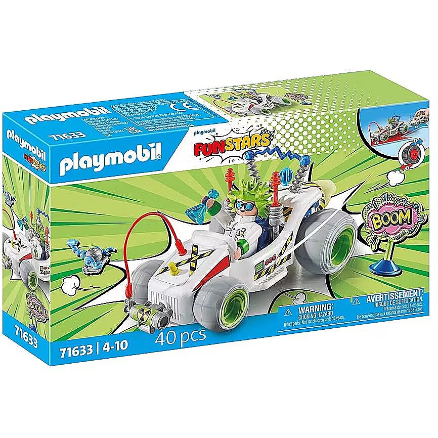 Description - The crazy PLAYMOBIL Funstars Racing set: The Professor with a PLAYMOBIL figure, go-kart, and lots of cool accessories.